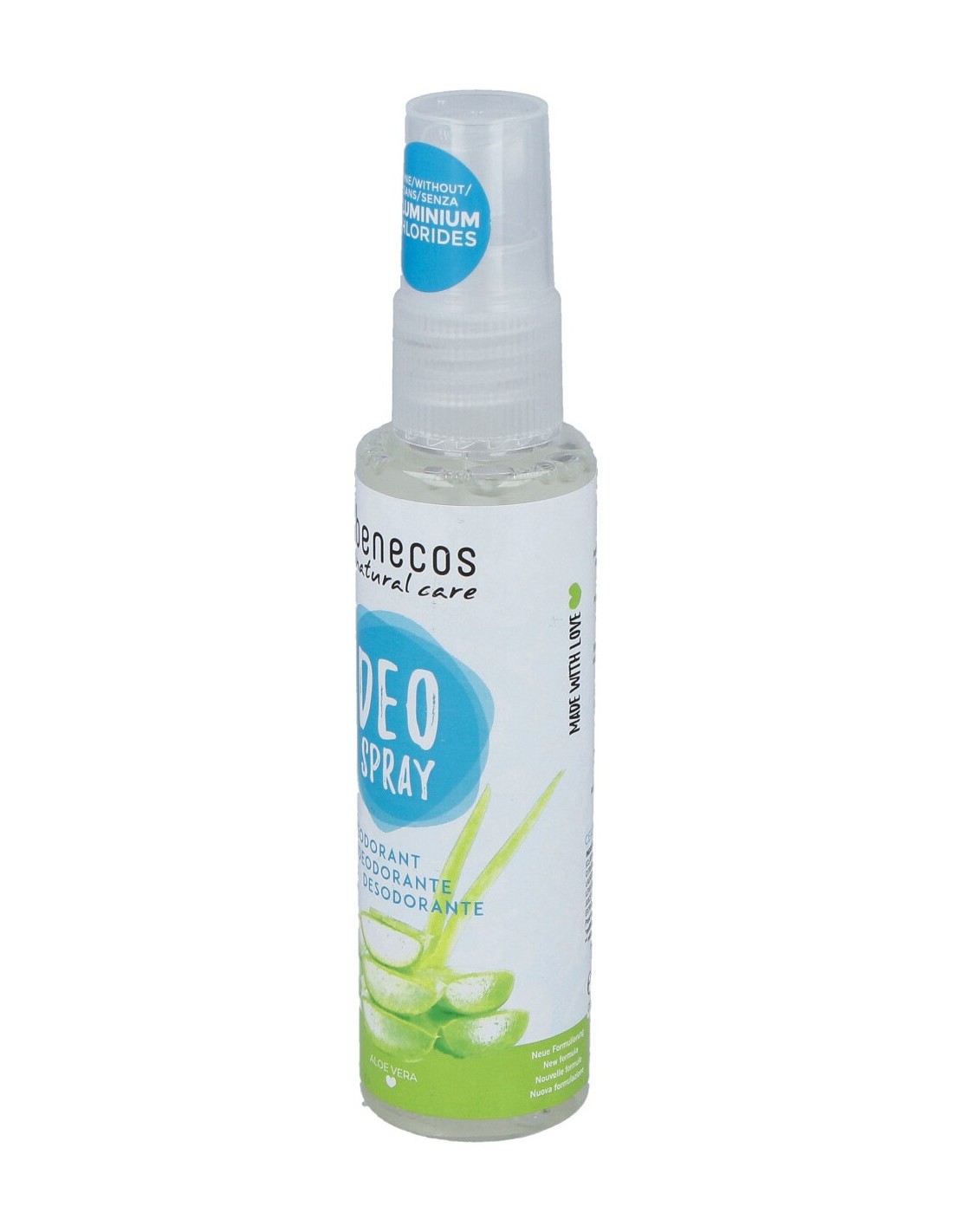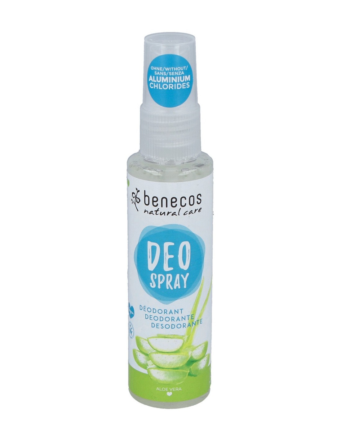 Desodorante Natural Ecológico Benecos sin clorhidrato de aluminio. El contenido en Aloe Vera, conocido por sus propiedades antisépticas y fungicidas, facilita el equilibrio de la flora natural de la piel sin ocluirla. Ideal para pieles sensibles, no irrita. Certificado BDIH y apto para veganos.