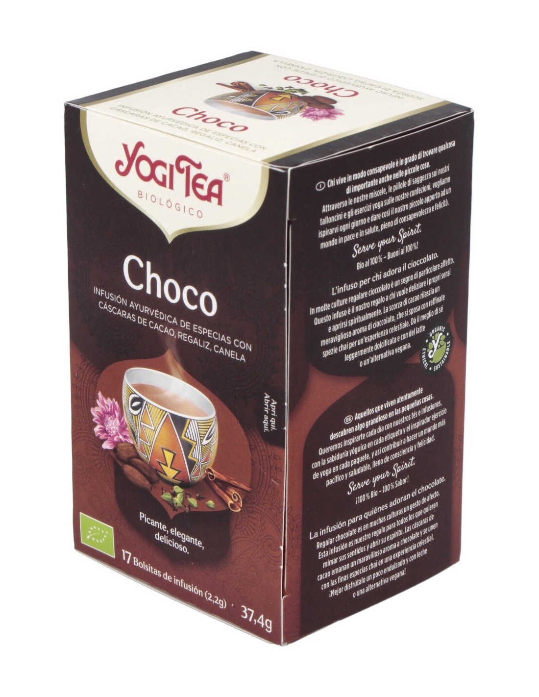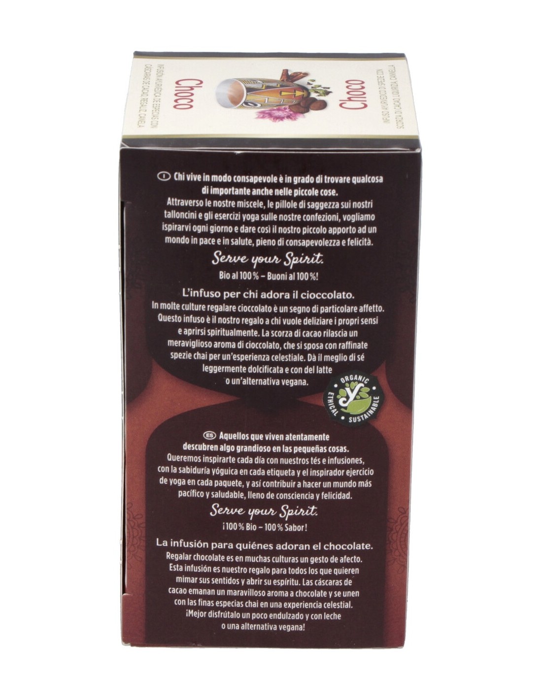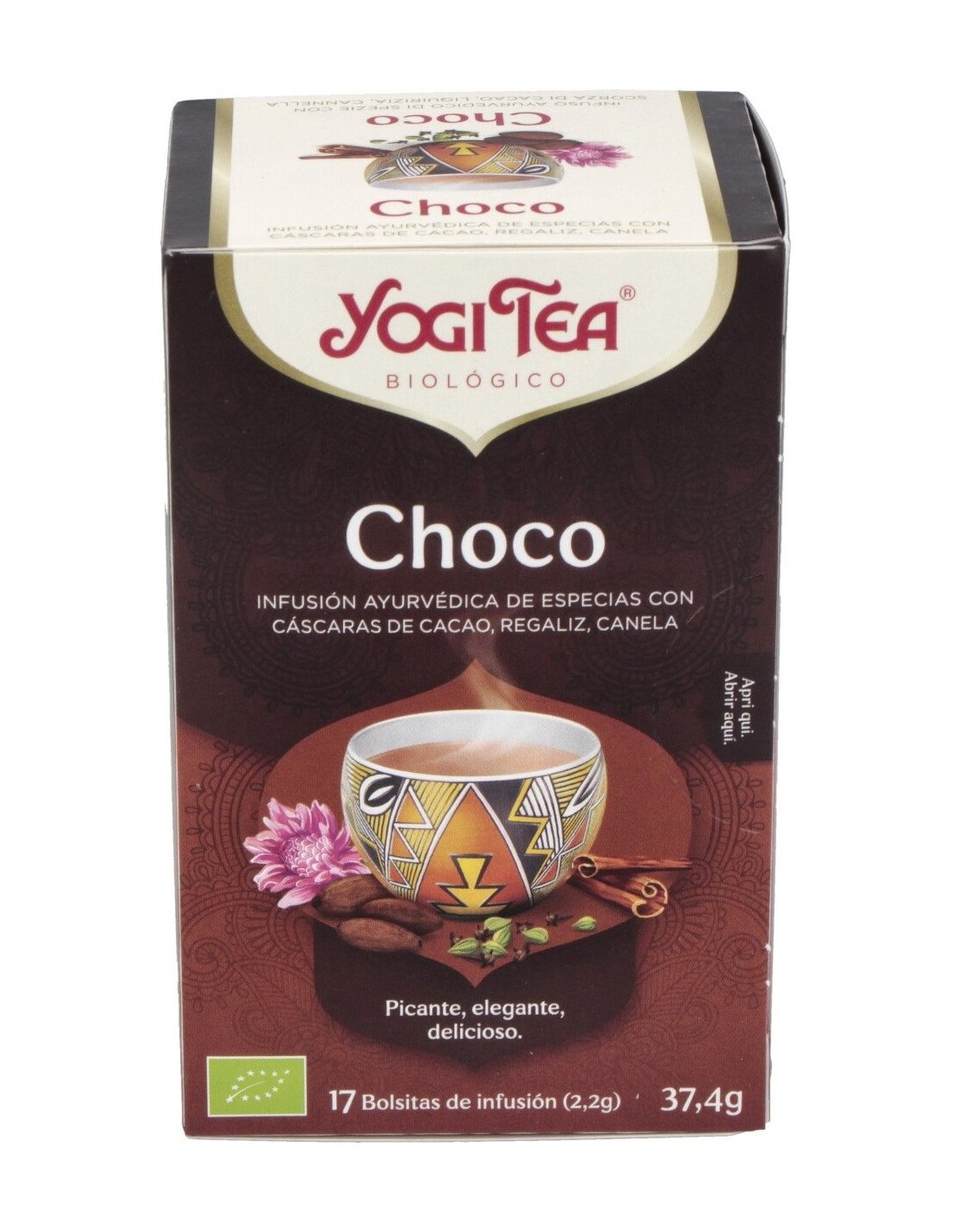 Cáscara de cacao*, canela*, regaliz*, algarroba*, cebada malteada*, cacao magro en polvo*, cardamomo*, jengibre*, clavo*, aceite de jengibre*, pimienta negra*, extracto de vainilla*, aceite de canela*, vainilla en vaina*