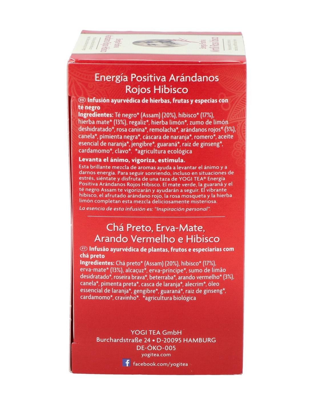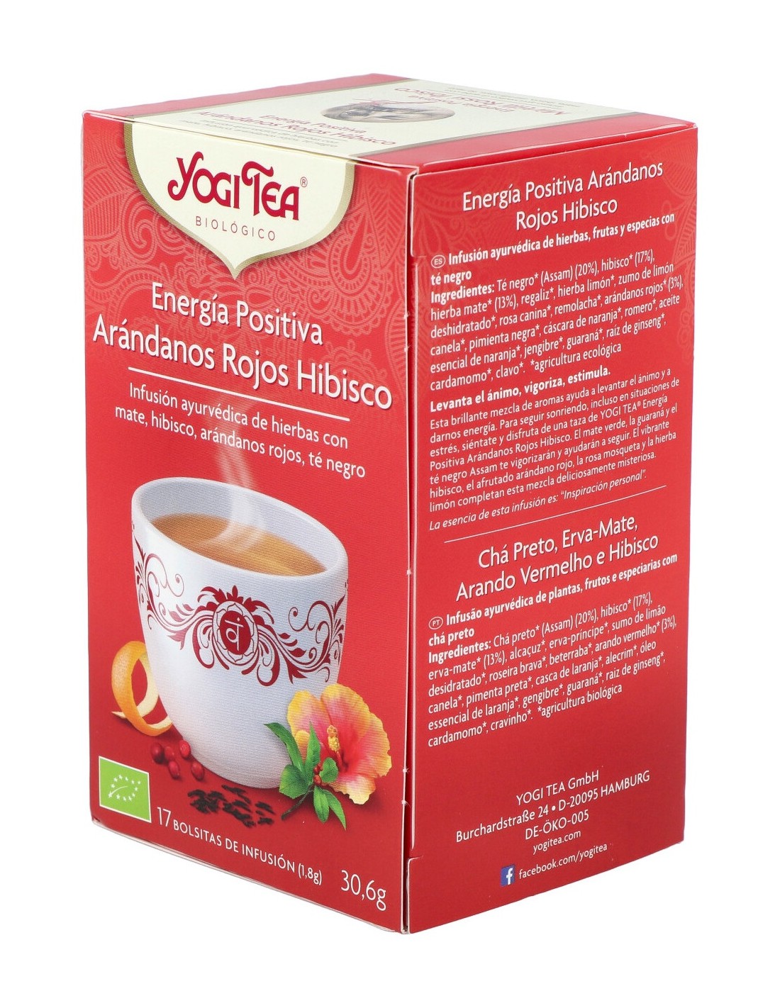 Té negro (Assam)*, hibisco*, hierba mate*, regaliz*, hierba limón*, zumo de limón deshidratado*, rosa canina*, remolacha*, arándanos rojos*, canela*, pimienta negra*, cáscara de naranja*, romero*, aceite esencial de naranja*, jengibre*, guaranà*, raíz de ginseng*, cardamomo*, clavo*