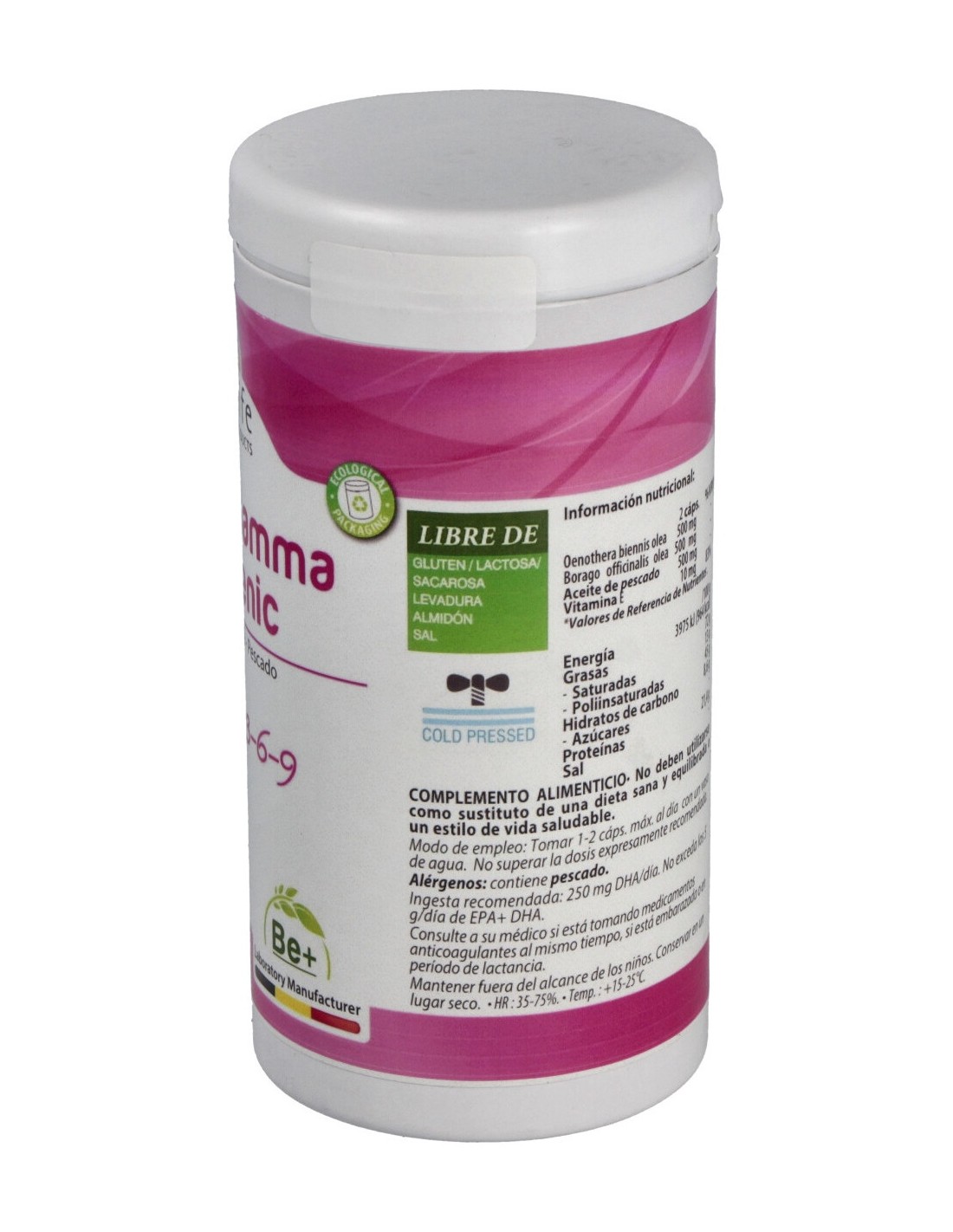 Cada cápsula de este complejo ofrece un suministro completo y equilibrado de ácidos grasos insaturados esenciales para la construcción de sus células. Los aceites de onagra y borraja, obtenidos por primera presión en frío, son ricos en Omega 3, 6 y 9 (incluyendo LA y G.L.A.) y el aceite de pescado asegura el consumo deseado de Omega 3 (EPA y DHA). Envase ecológico.