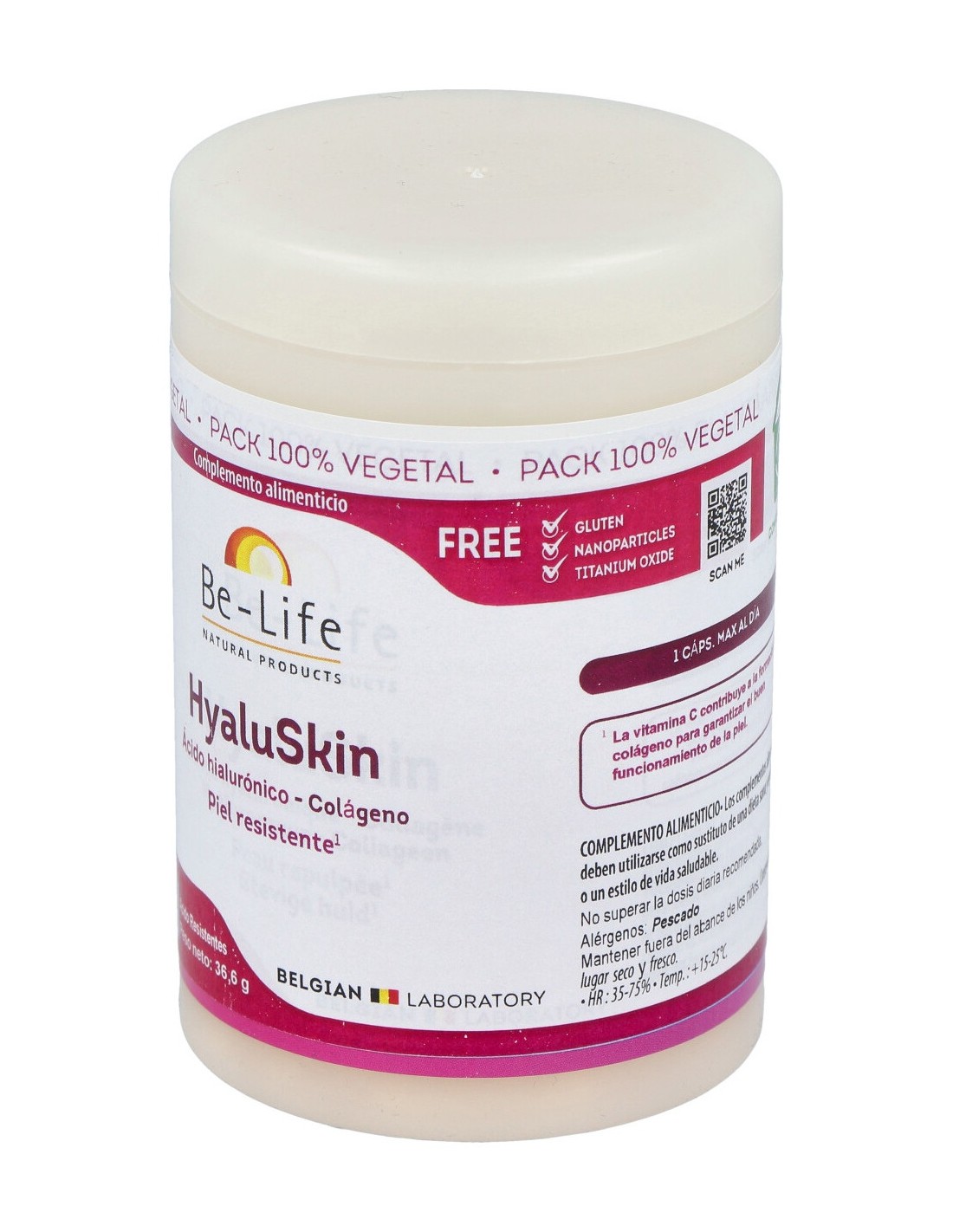 Suplemento a base de colágeno marino obtenido por hidrólisis enzimática y ácido hialurónico, útil para el normal mantenimiento de la piel. El ácido hialurónico y el colágeno de tipo 1 no desnaturalizado, junto con la coenzima Q10, contribuyen a una normal estructura fibrosa del tejido. La Co-Q10 Ubiquinona actúa como cofactor en la producción de energía mitocondria, lo cual puede ayudar a las pieles cansadas y contribuir a reducir el estrés oxidativo. La fórmula se completa con vitamina C, que ayuda a la formación normal de colágeno para el normal mantenimiento de la piel.