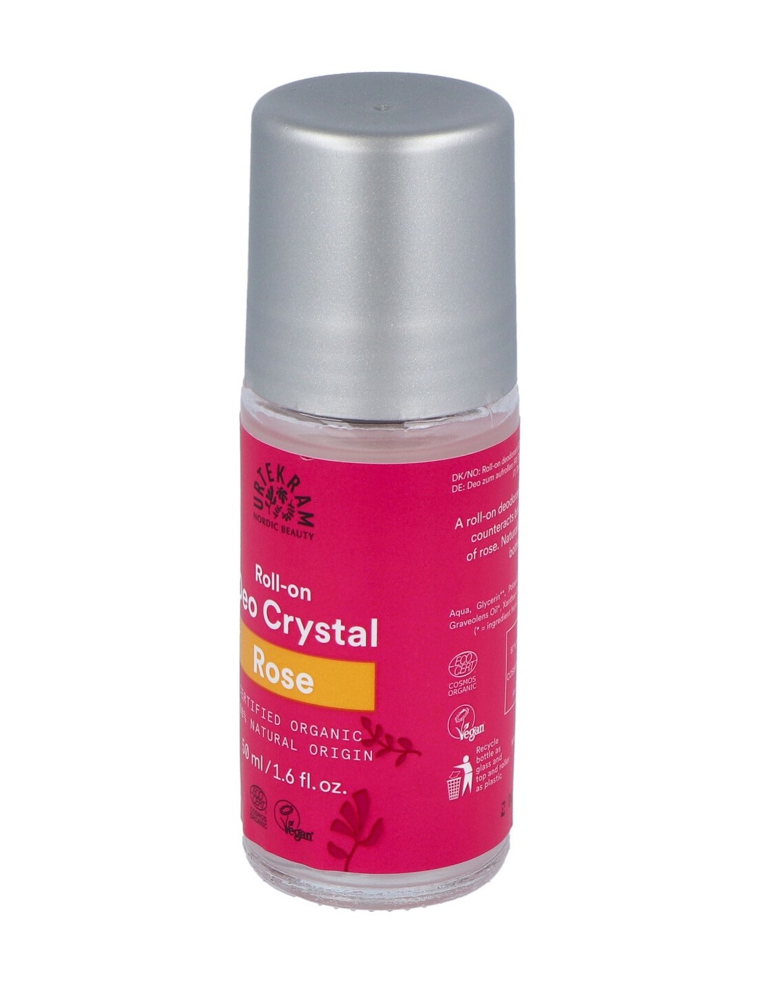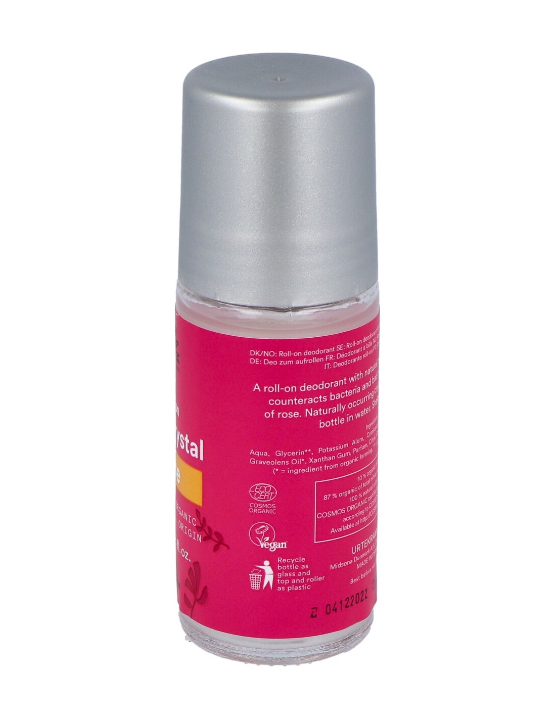 Desodorante cristal con aroma de rosas en práctico roll-on. Las bacterias y el mal olor son una cosa del pasado gracias a la sal mineral natural. A la base desodorante del alumbre y se incorpora glicerina vegetal que cuida la piel y aceites de geranio rosa y citronella que ofrecen un aroma delicado a miles de rosas. COSMOS ORGANIC certificado por Ecocert Greenlife. Vegano. No testado con animales.