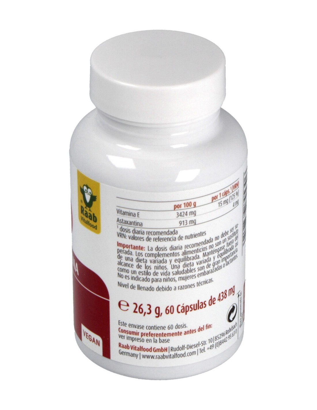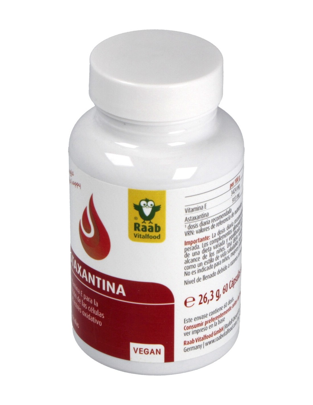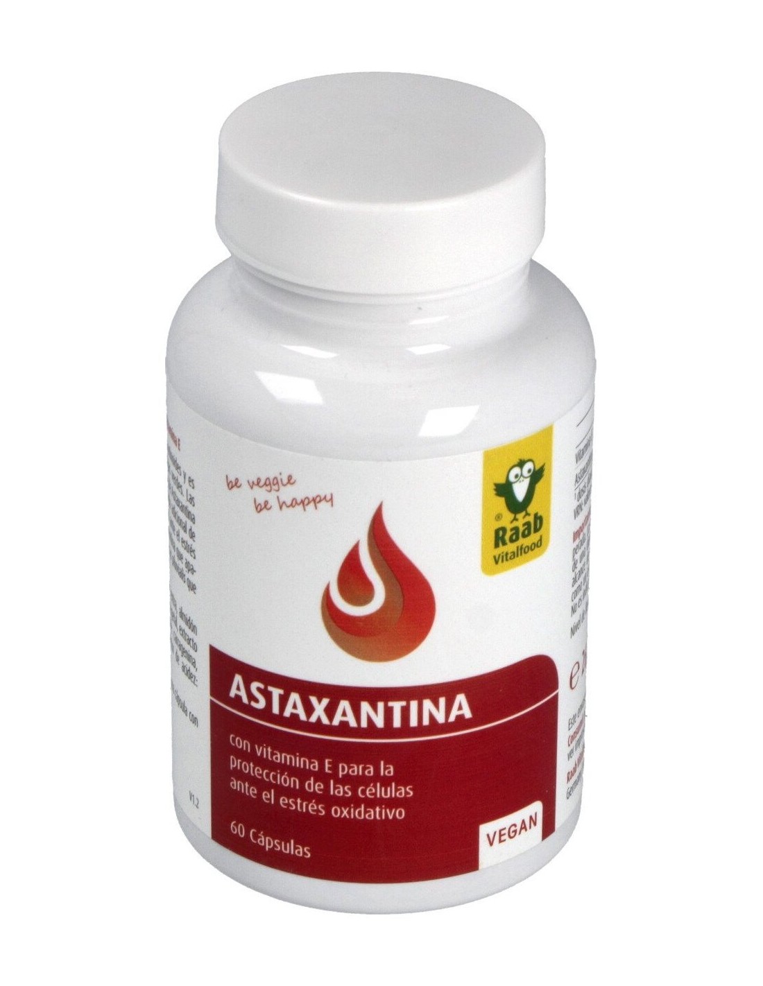 Suplemento con Astaxantina de la alga Haematococcus enriquecido con vitamina E, que contribuye a la protección de las células frente al estrés oxidativo. Apto para veganos.