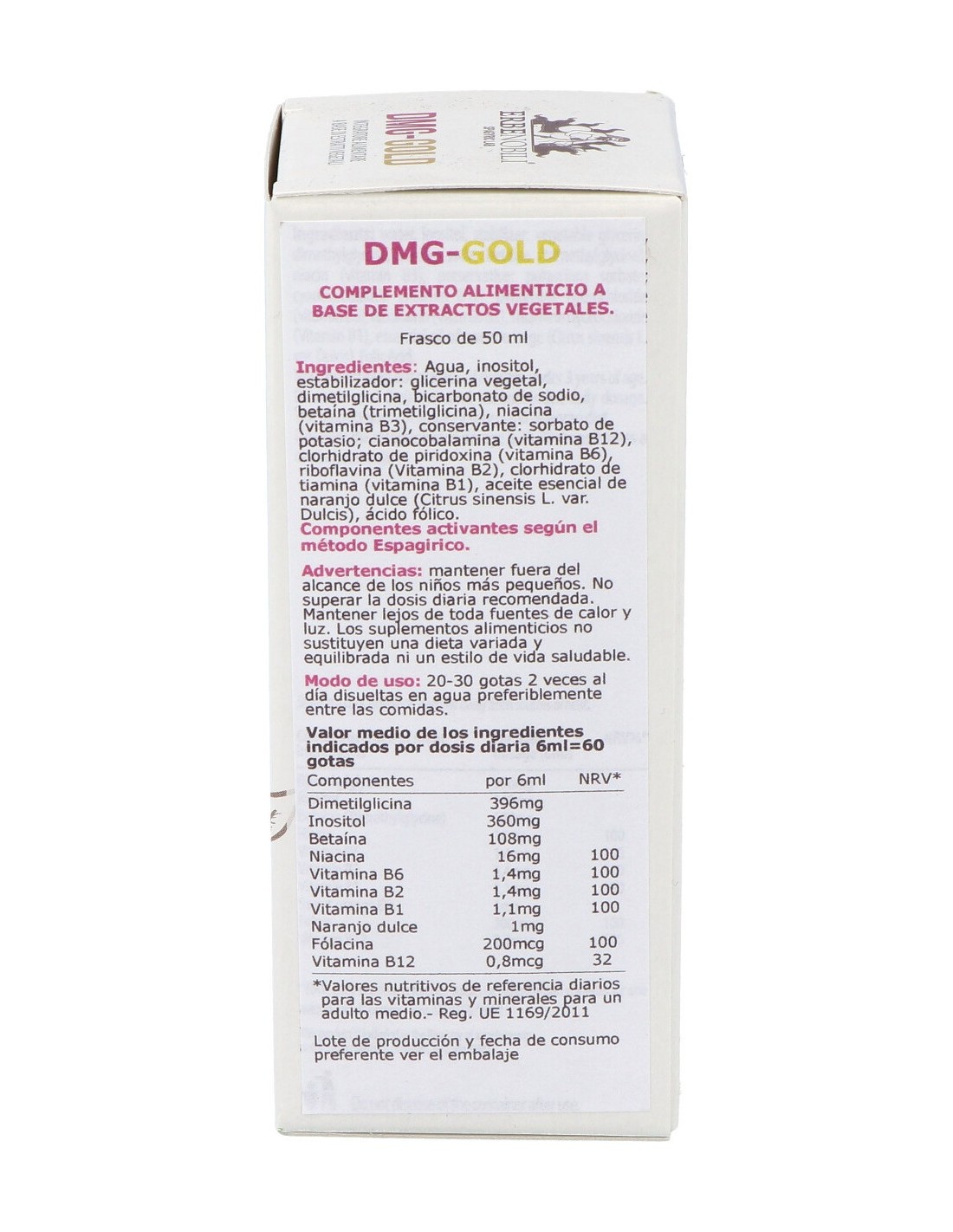Agua, inositol, estabilizador: glicerina vegetal, dimetilglicina, bicarbonato de sodio, betaína (trimetilglicina), niacina (vitamina B3), conservante: sorbato de potasio: cianocobalamina (vitamina B12), clorhidrato de piridoxina (vitamina B6), riboflavina (Vitamina B2), clorhidrato de tiamina (vitamina B1), aceite esencial de naranjo dulce (Citrus sinensis L. var. Dulcis), ácido fólico.