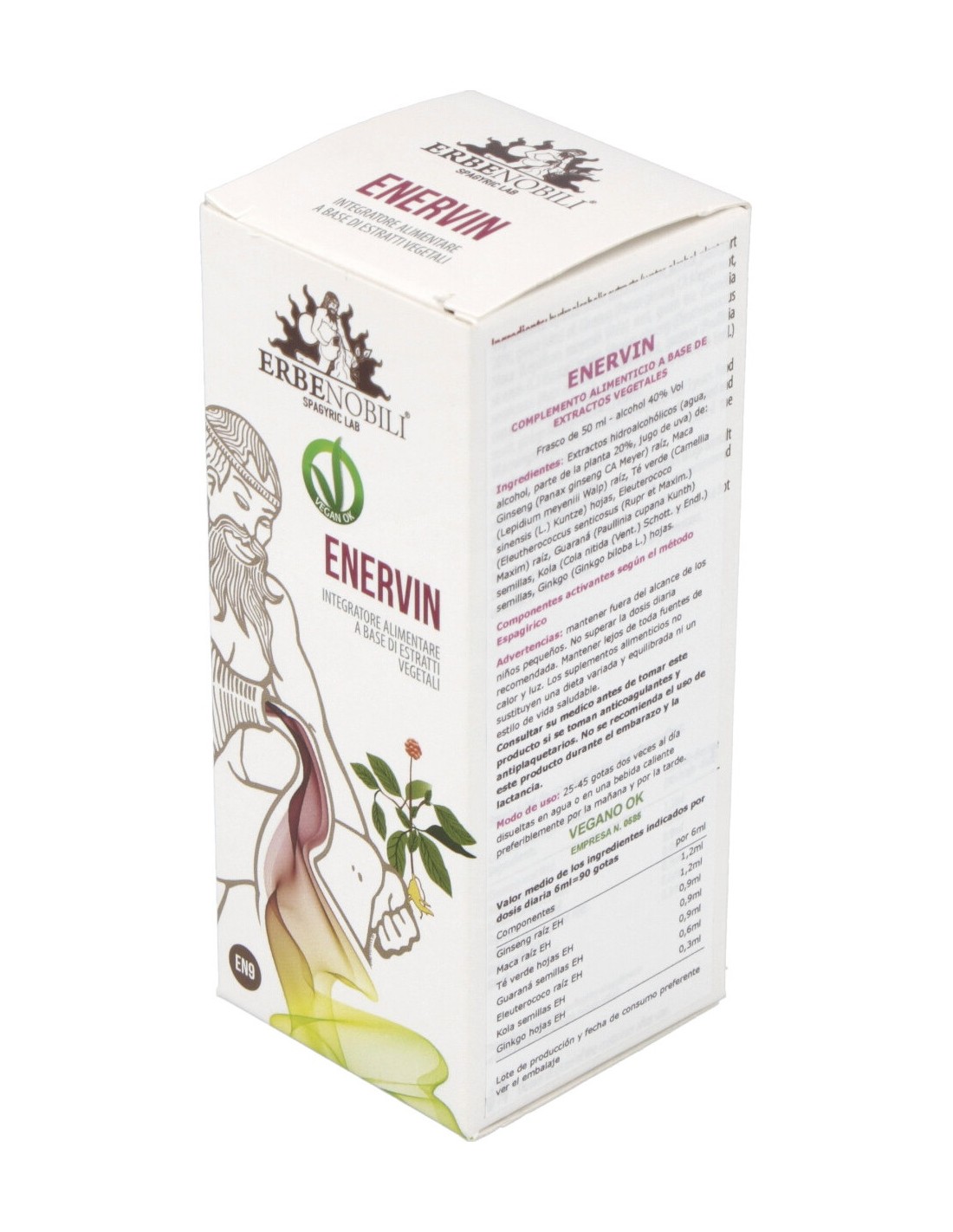 Extractos hidroalcohólicos (agua, alcohol, parte de la planta 20%, jugo de uva) de: Ginseng (Panax ginseng CA Meyer) raíz, Maca (Lepidium meyeniii Walp) raíz, Té verde (Camellia sinensis (L.) Kuntze) hojas, Eleuterococo (Eleutherococcus senticosus (Rupr et Maxim.) Maxim) raíz, Guaraná (Paullinia cupana Kunth) semillas, Kola (Cola nitida (Vent.) Schott. y Endl.) semillas, Ginkgo (Ginkgo biloba L.) hojas.