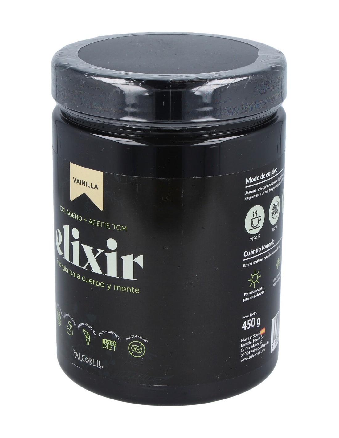 Añadir 1 cacito (aproximadamente 15 g) de Elixir al café, bebida favorita, receta de cocina o simplemente a un vaso de agua templada o fría. Puede tomarse también en las comidas.