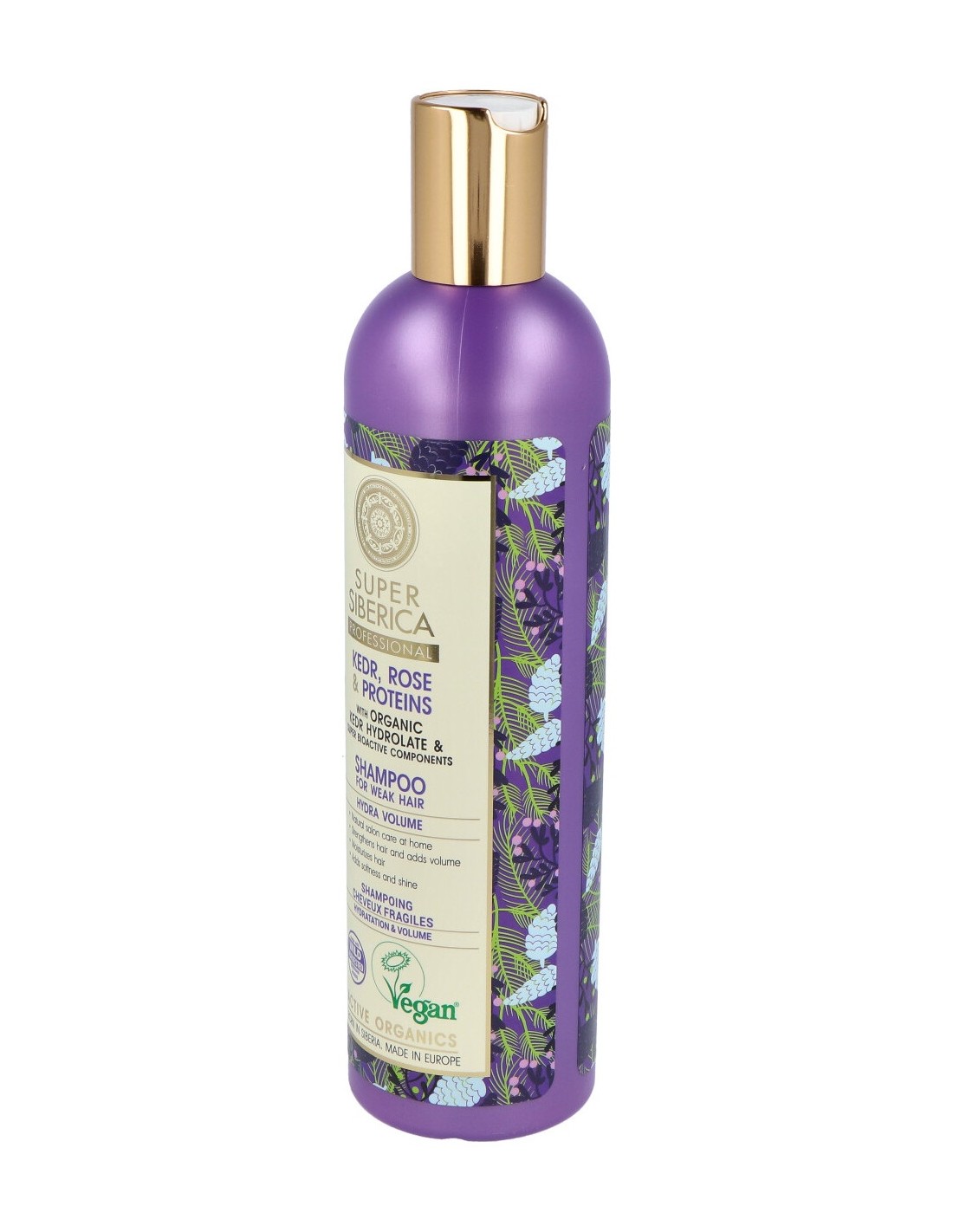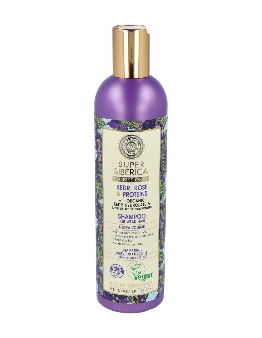 Basado en hidrolato de pino siberiano orgánico, limpia delicadamente e hidrata el cabello débil y le proporciona fuerza, energía, volumen desde las raíces y un brillo deslumbrante. Apto para veganos.