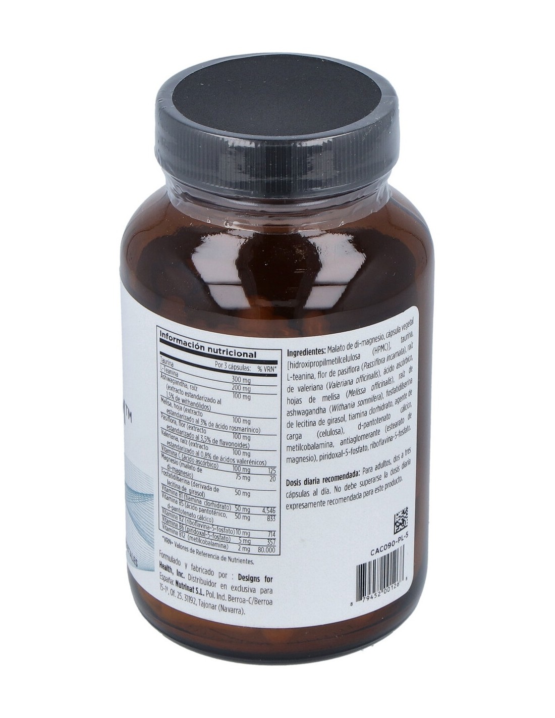 Complemento alimenticio a base de vitaminas, minerales, aminoácidos, botánicos y fosfolípidos que favorecen la relajación.