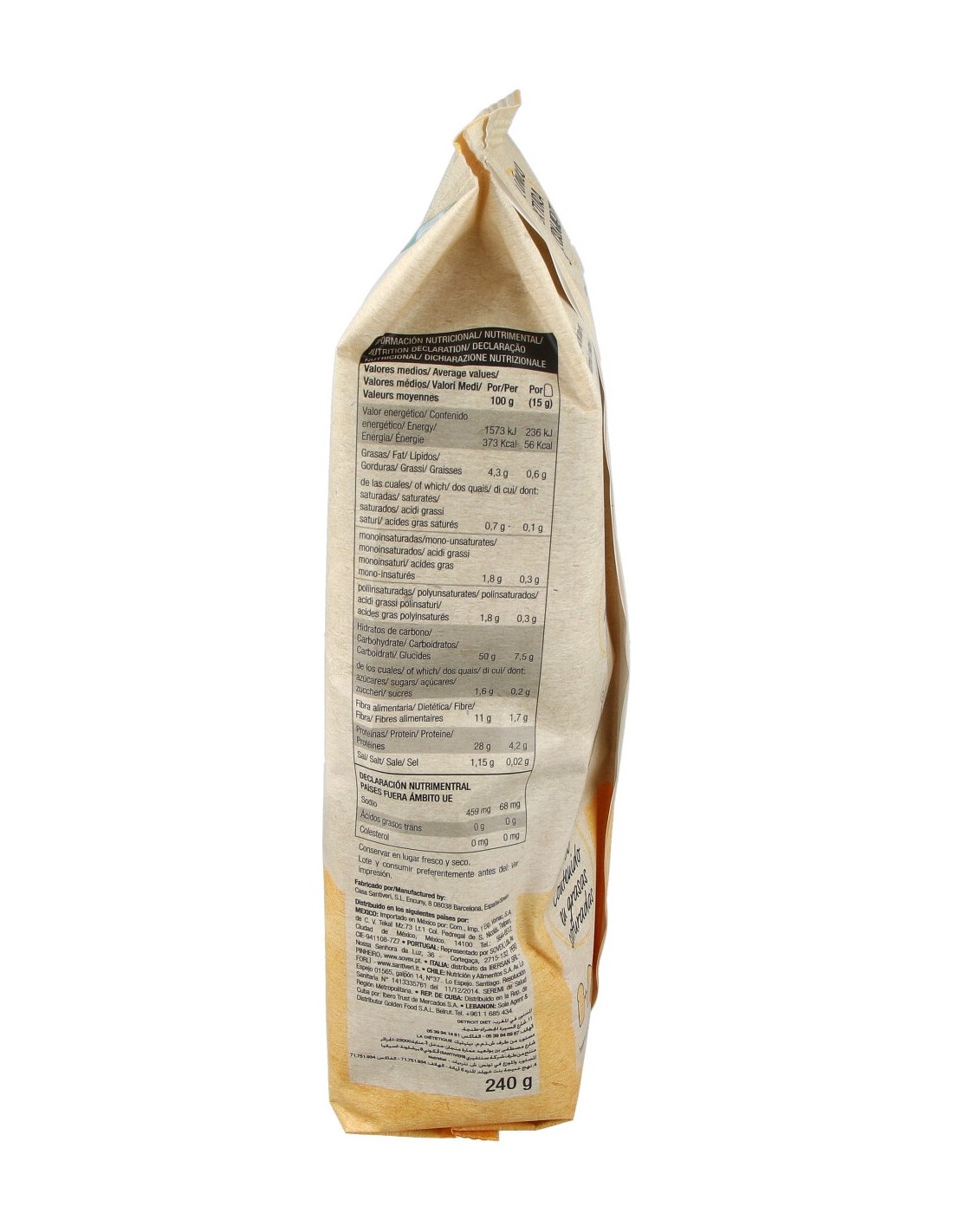 Harina de trigo, salvado de trigo, proteína de guisante, gluten de trigo, levadura, aceite de oliva virgen extra, sal, antioxidante (extracto rico en tocoferoles).