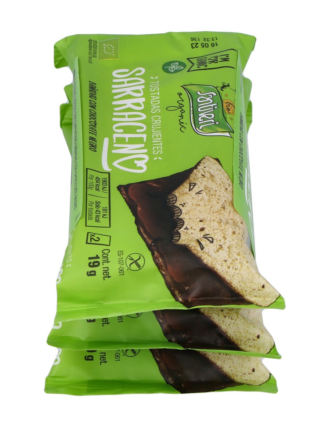 Harina de trigo sarraceno* (50%), chocolate negro* (pasta de cacao*, azúcar*, manteca de cacao*, vainilla en polvo*) (49%), sal marina.