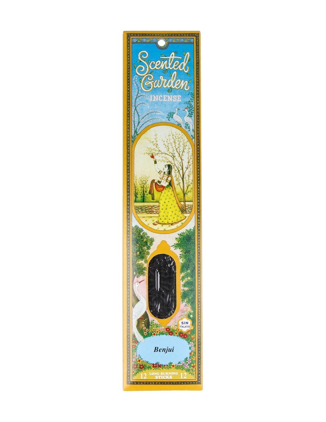 Incienso sin ftalatos. Aconsejado para la meditación, lectura, o simplemente relajarse. La casa se perfuma con fragancias naturales.INCIENSO STICK BENJUI 12uds SCENTED GARDEN de RADHE SHYAM