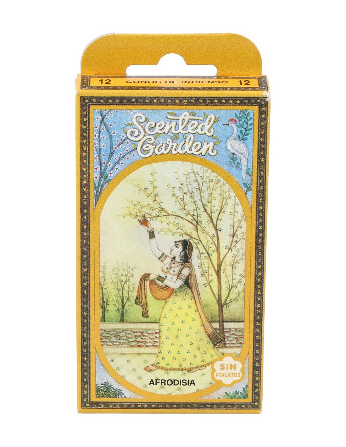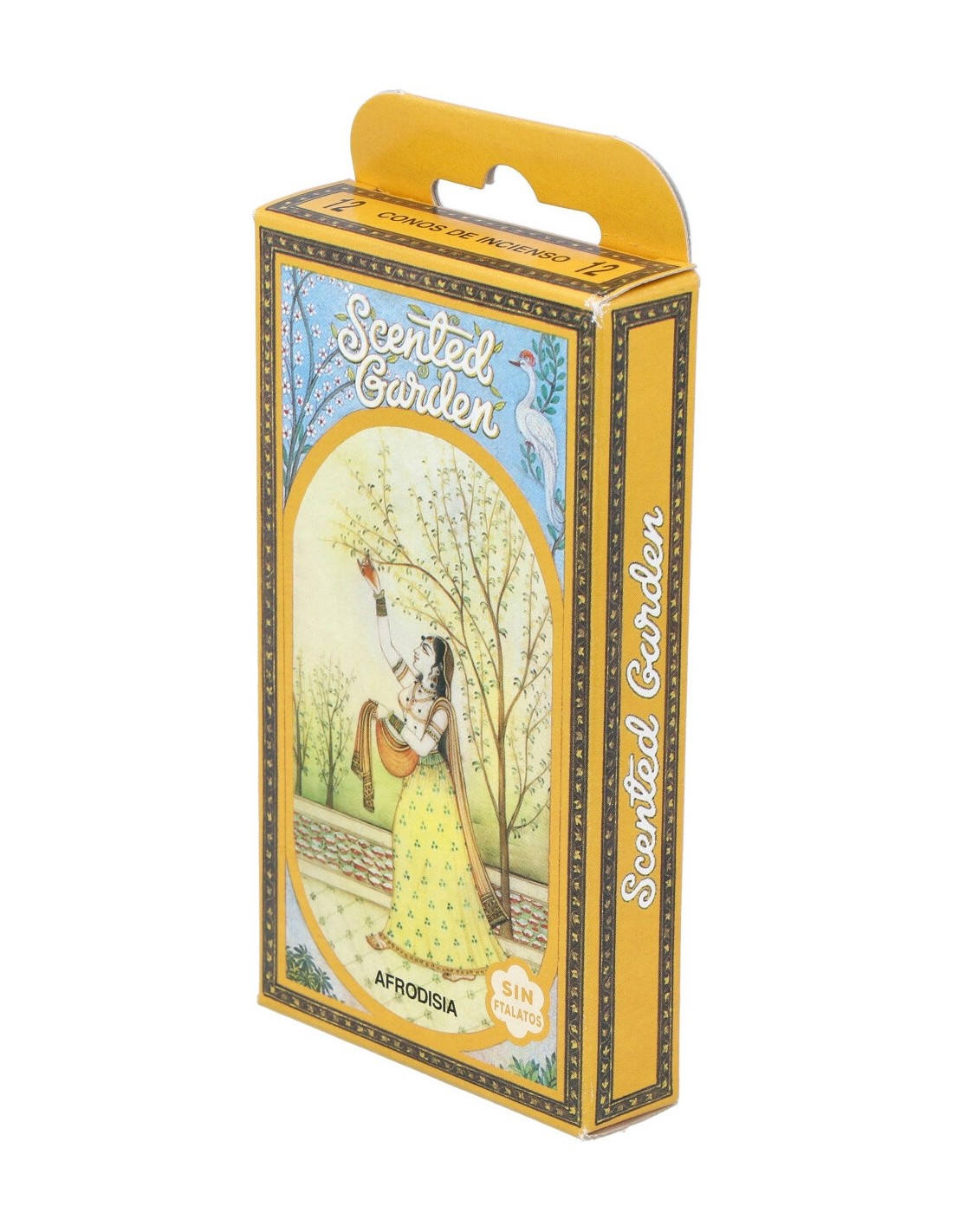Incienso sin ftalatos. Aconsejado para la meditación, lectura, o simplemente relajarse. La casa se perfuma con fragancias naturales.SCENTED GARDEN INCIENSO CONO AFRODISIA 12uds. de RADHE SHYAM