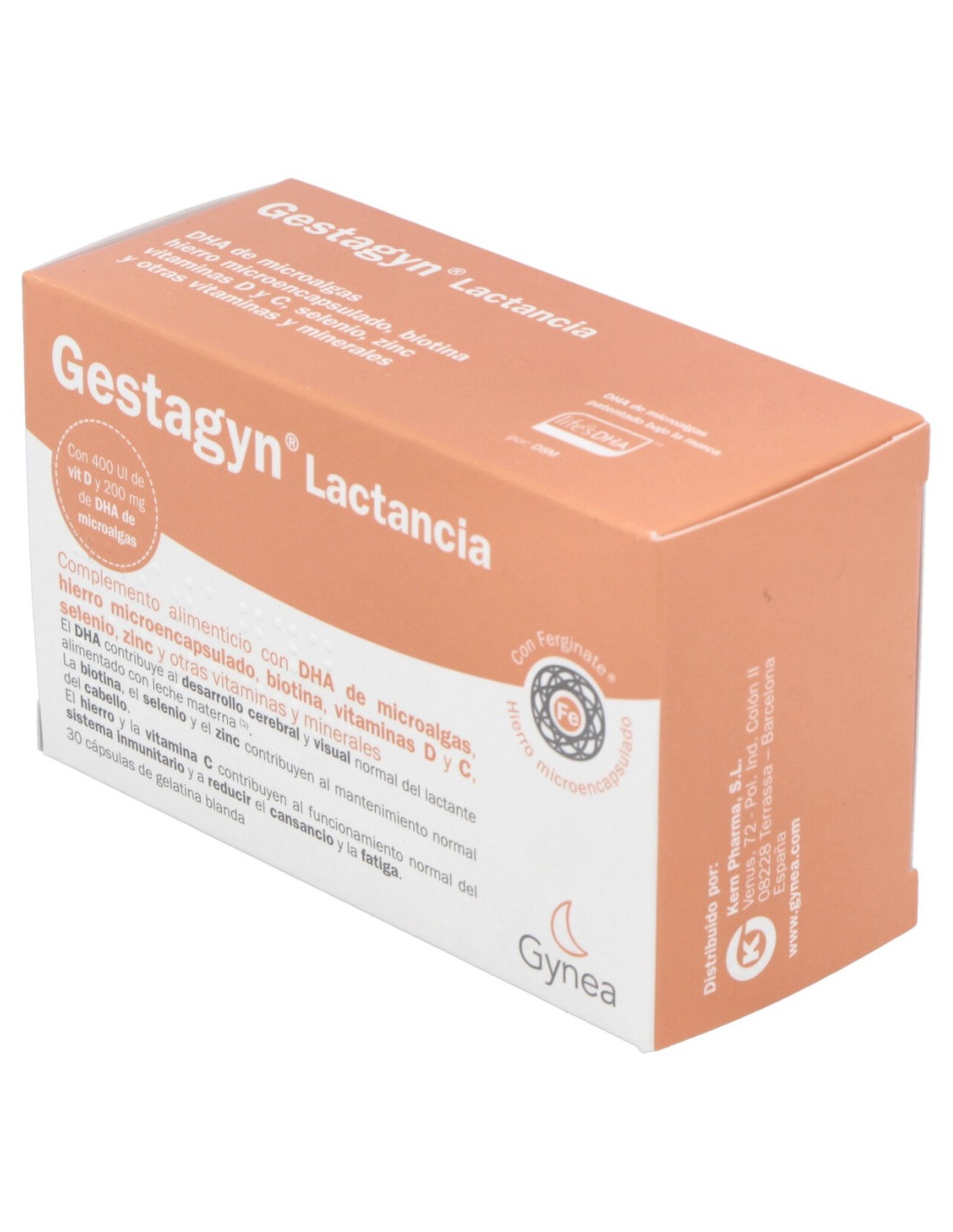Complemento alimenticio específico para la lactancia con DHA de microalgas, ácido fólico, yodo, betacaroteno, y otras vitaminas y minerales adecuados para la etapa de la lactancia.