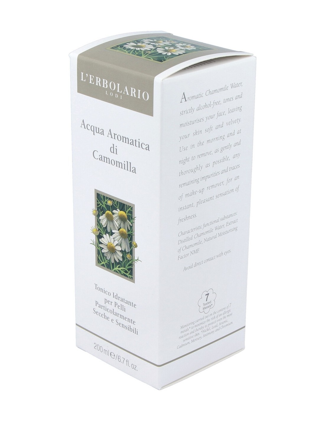 Agua de manzanilla destilada, extracto de manzanilla, complejo humectante de piel NMF.
