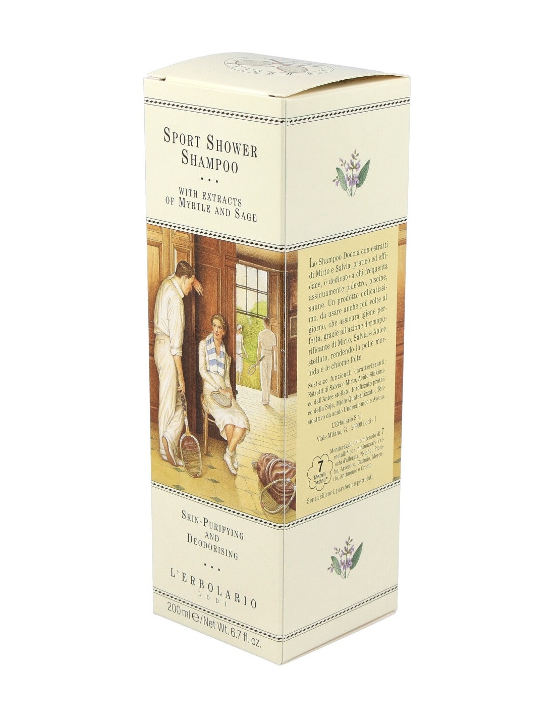 Limpiador corporal y capilar 2 en 1 con extractos de mirto y salvia con acción purificante y desodorante. Deja la piel suave y está indicado para quienes frecuentan regularmente gimnasios, piscinas, saunas, etc.