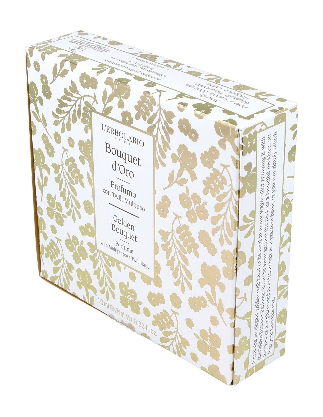 Perfume floral femenino de edición limitada con una elegante sarga dorada.