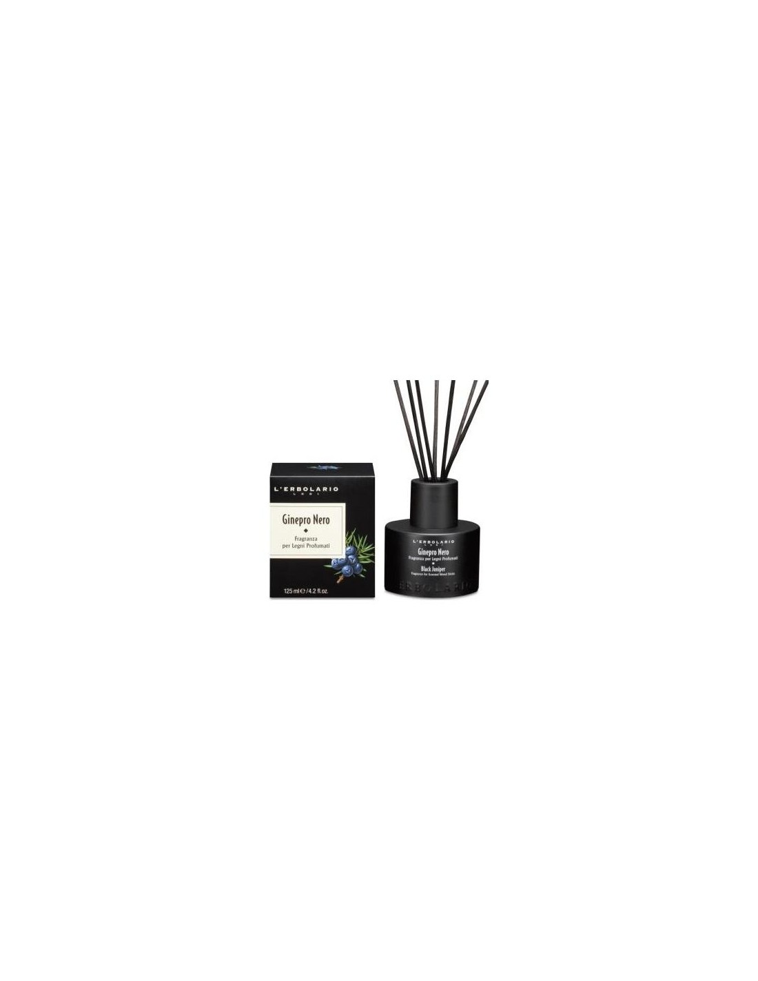 Fragancia revitalizante para el hogar. Al sumergir los palitos de ratán en la solución perfumada, la sinfonía de Black Juniper, con sus notas cítricas y amaderadas, se liberará en el aire y asegurará una frescura duradera en las habitaciones.