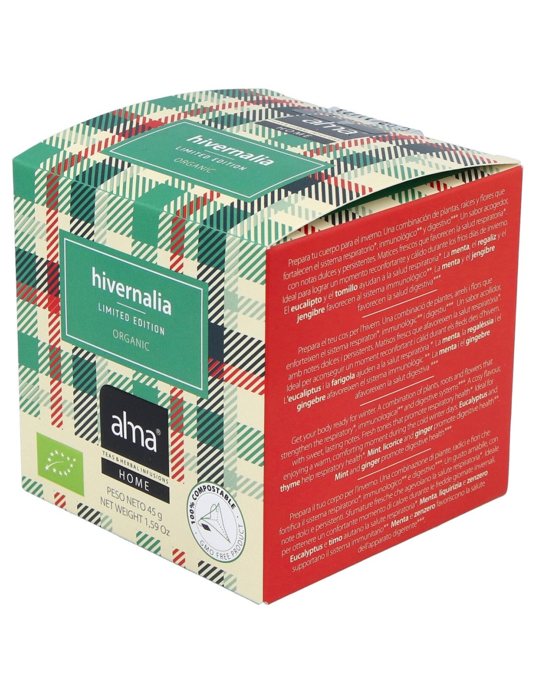 Menta piperita* Mentha x piperita L, regaliz* Glycyrrhiza glabra L., manzana* Pirus malus L.fruto cortado deshidratado, saúco* Sambucus nigra L, jengibre* Zingiber officinale Roscoe', tomillo* Thymus vulgaris L, eucaliptus* Eucalyptus globulus Labill.