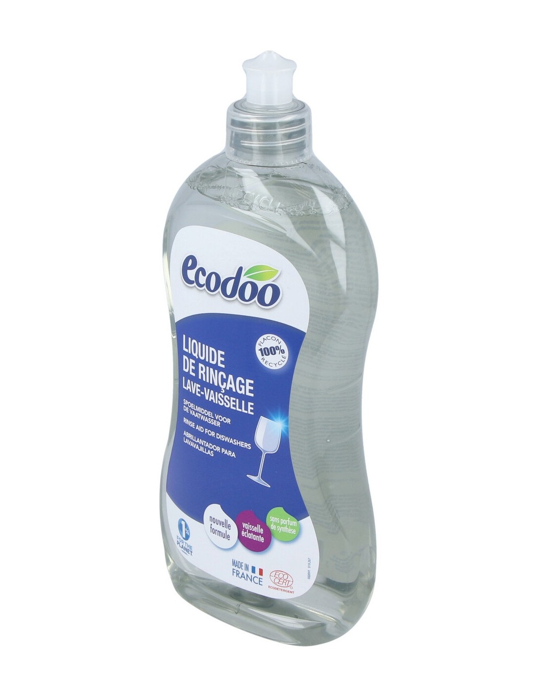 Abrillantador con aceite esencial de menta sin colorante ni perfumes sintéticos. Deja la vajilla brillante y sin marcas después del secado. No testado en animales.