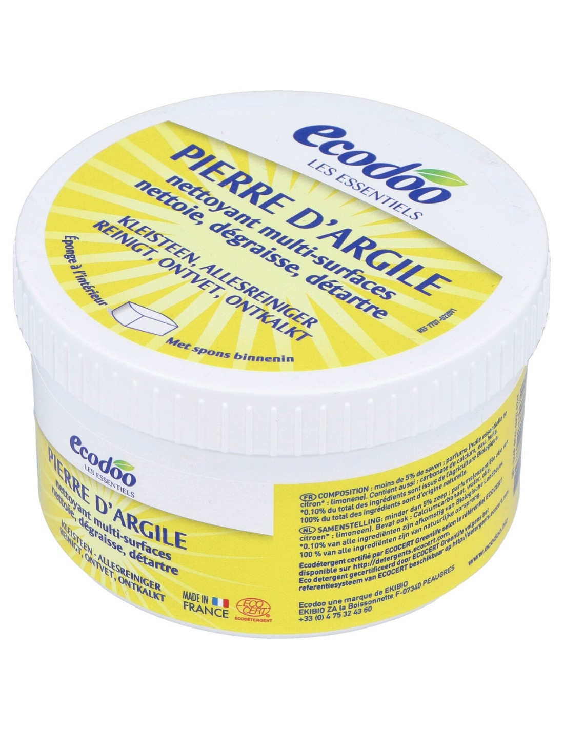 Con certificado EcoCert. Contiene una esponja para una fácil aplicación del producto sin rayar las superficies. Limpia, desincrusta y desengrasa, dejando un suave olor gracias al limón natural que lo compone.