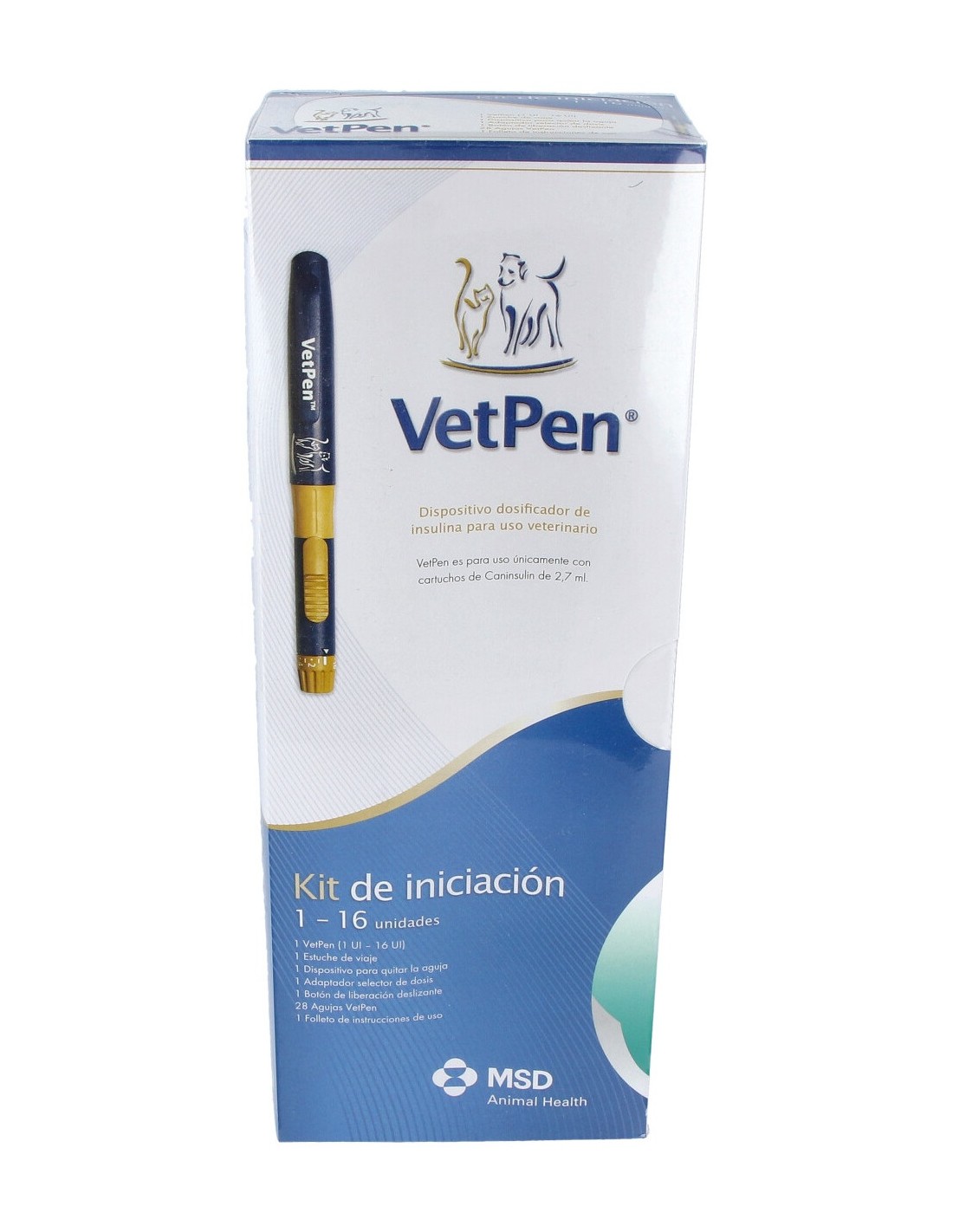 Dispositivo para administrar Cannisulín de forma cómoda y sencilla a perros y gatos. Proporciona de 1 a 16 unidades por inyección. El pack también contiene una breve guía sobre los componentes de VetPen, un folleto de instrucciones, el dispositivo eliminador de agujas, 28 agujas, y la funda de viaje para poder transportar VetPen con mayor comodidad.NOTA: No contiene Canninsulín.
