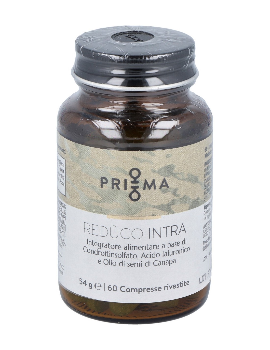 Condroitín sulfato 100 mg: L-carnitina 100 mg: Piña e.s. 100 mg: Castaño de Indias e.s. 100 mg: Ácido hialurónico 75 mg: Aceite de semillas de Cáñamo 45 mg.