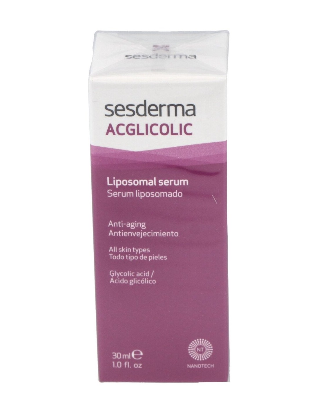 Sérum antienvejecimiento concentrado con ácido glicólico libre y liposomado que renueva, regenera e hidrata la piel. Ideal para todo tipo de piel como tratamiento de base.