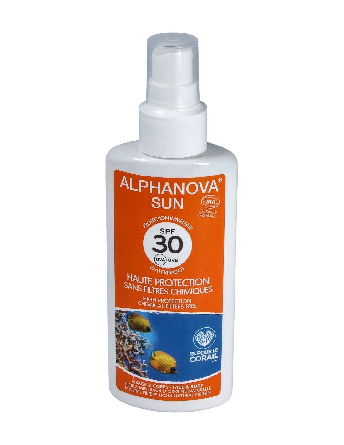 Protección de los daños causados por la radiación solar respetando el medio ambiente, sin filtros químicos ni óxido de zinc, sin riesgo para los organismos marinos. Protección inmediata. Waterproof. Delicioso perfume a monoï. Con certificado COSMOS ORGANIC.