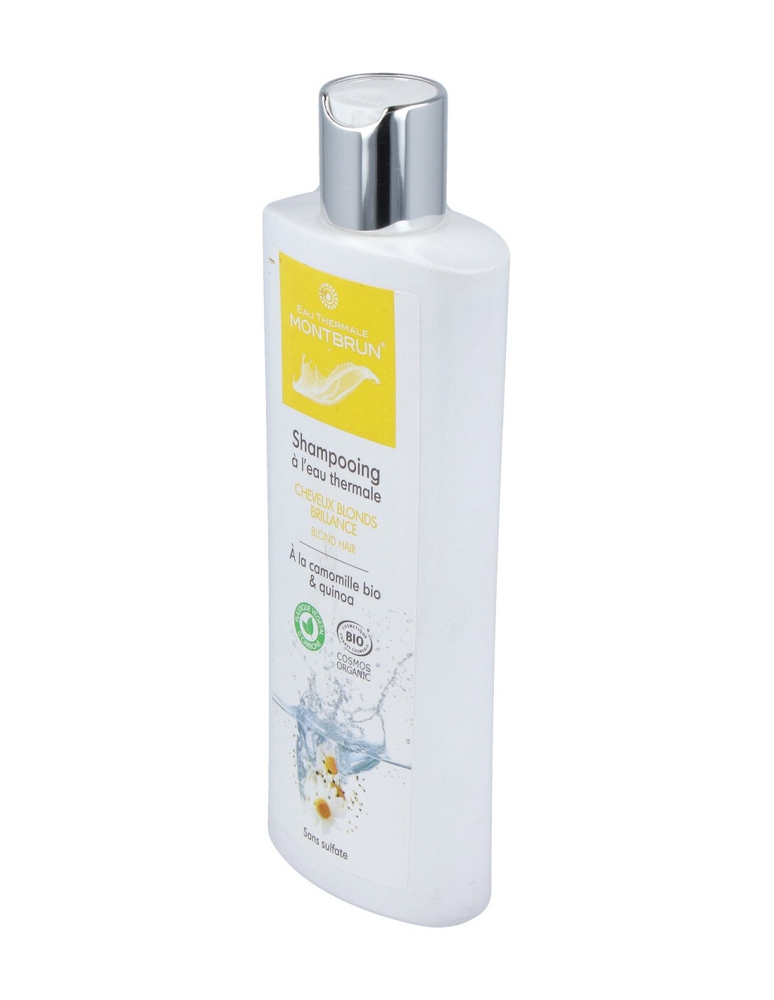 Formulado a base de agua termal y enriquecido en manzanilla bio y quinoa. Permite conservar o recuperar un rubio destellante y luminoso ya sea natural o tintado. Uso frecuente posible. COSMOS ORGANIC certificado por ECOCERT Greenlife según el estándar ECOCERT.