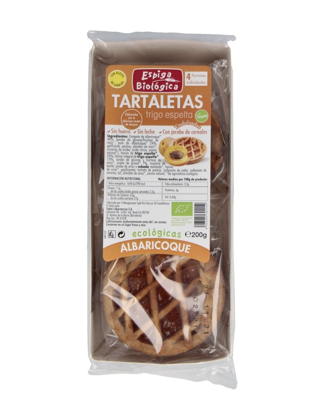 TARTALETA DE ESPELTA con albaricoque 4uds. ECO de ESPIGA BIOLOGICA está disponible en nuestra web.