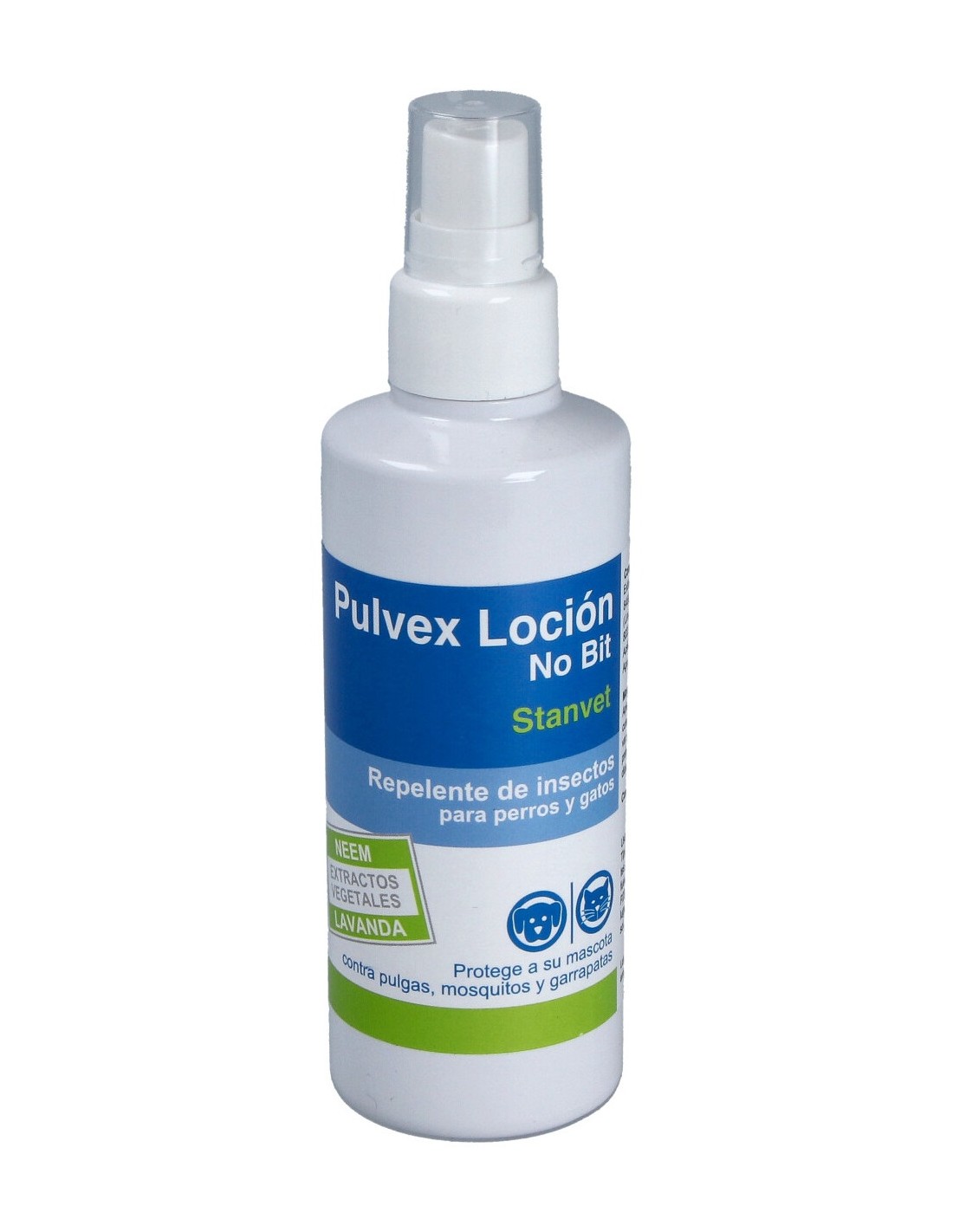 Separar el pelo del cuello y lomo del animal y aplicar el spray sobre la piel. Repetir todos los días y antes de salir al campo.