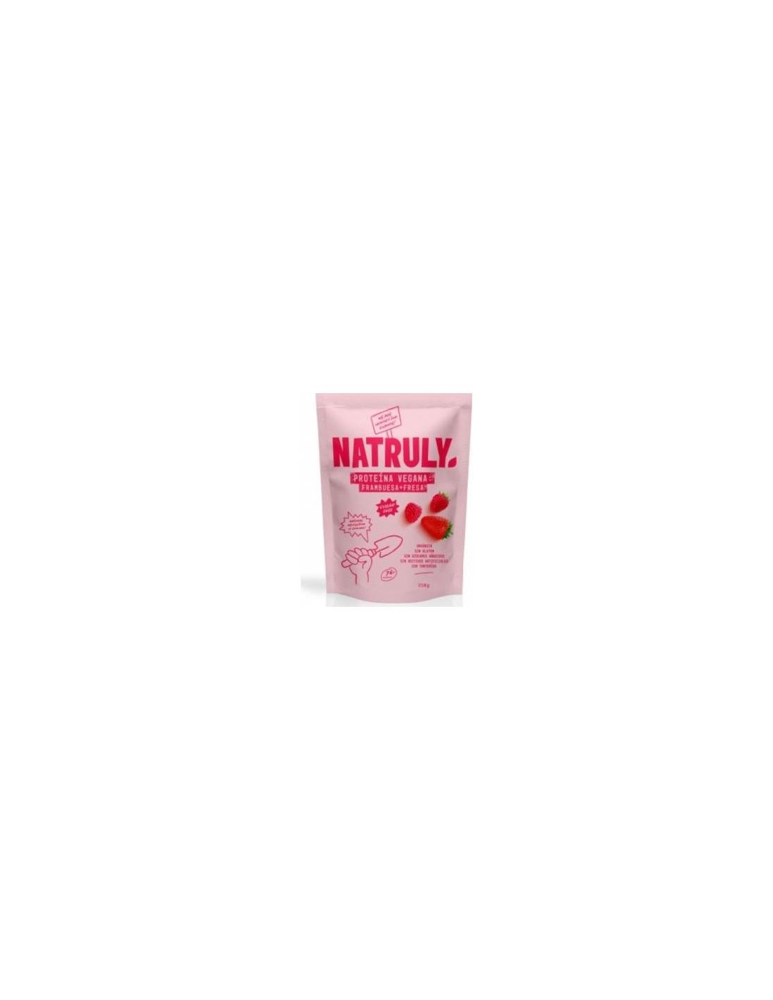 Mezcla de proteínas (90.6%), Aroma natural de bayas (5%), Frambuesa en polvo (2%), Fresa en polvo (2%), Remolacha en polvo (0.4%)