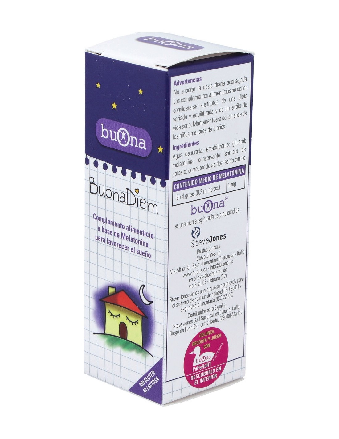Melatonina (grado de pureza certificada no inferior al 99%, determinada con método HPLC), Potasio Sorbato, Ácido Cítrico y Glicerol.