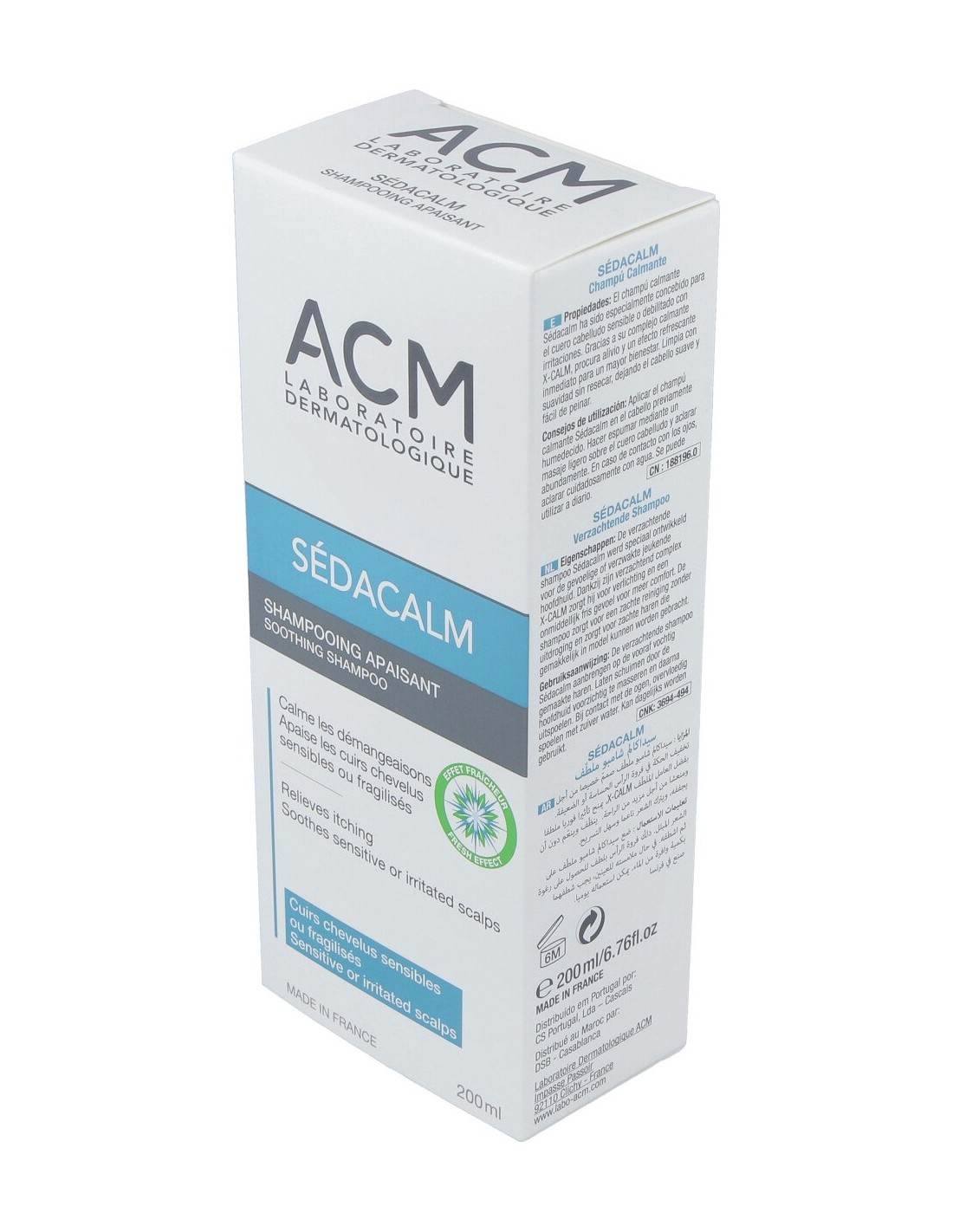Calma y alivia el picor en cuero cabelludo sensible e irritado. Acción refrescante. Limpia y suaviza el cabello.SEDACALM champu calmante 200ml. de ACM Laboratoires