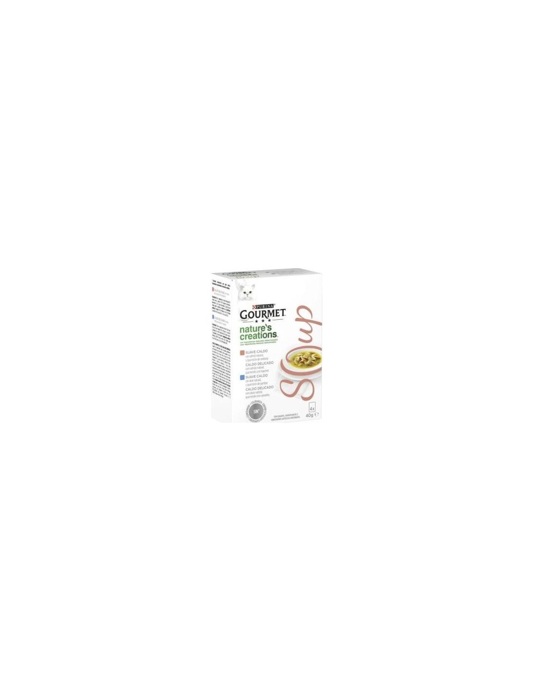 Elaborado con salmón natural. Servido en un suave caldo. Sin colorantes, aromatizantes y conservantes artificiales añadidos. Alimento complementario para gatos adultos.