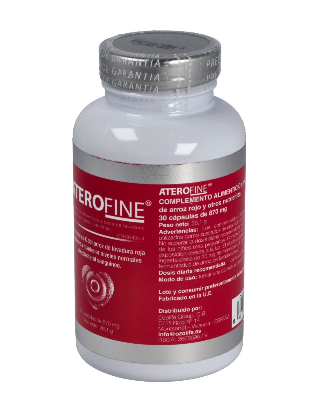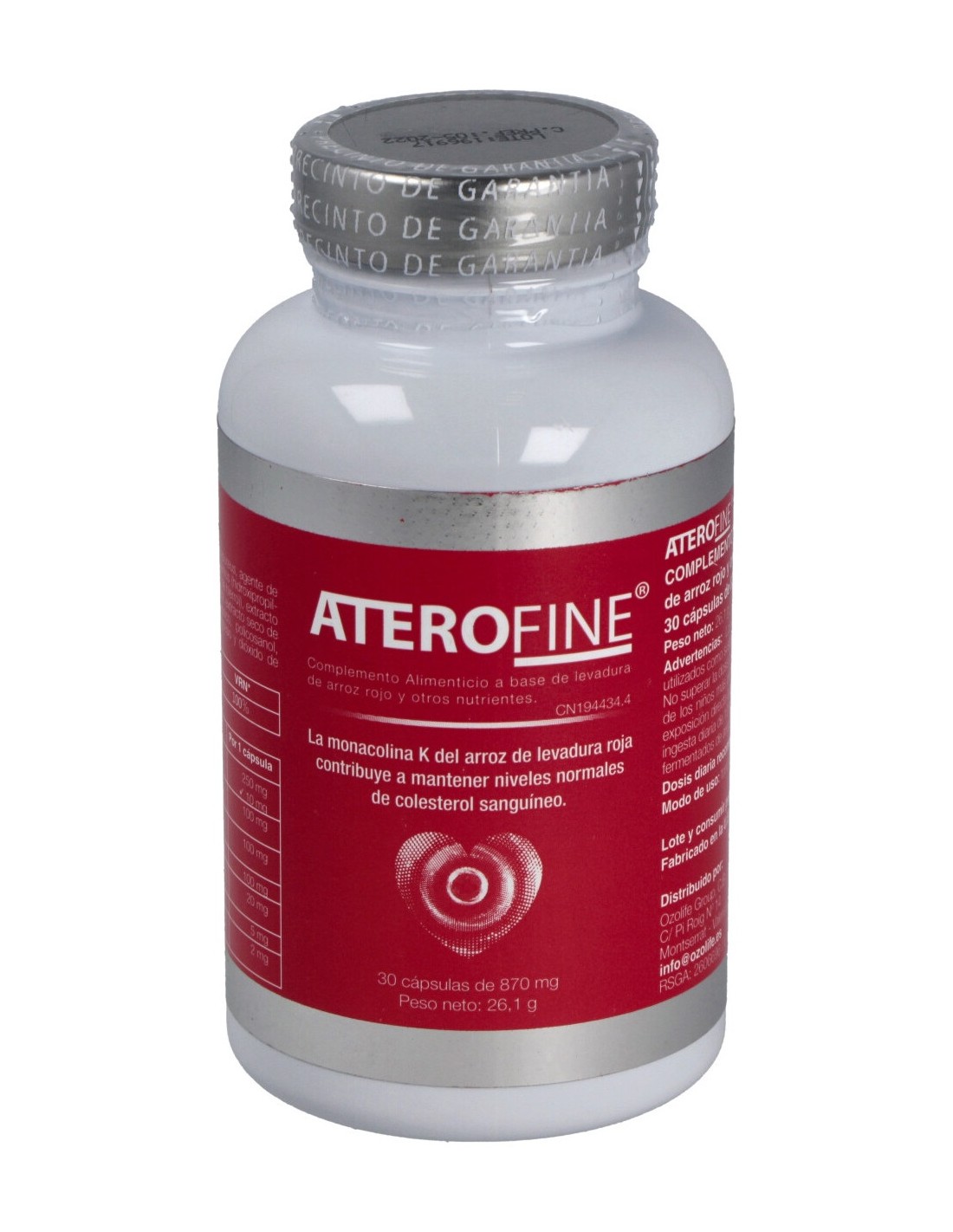 Fórmula destinada a mejorar los niveles de colesterol y triglicéridos en sangre.ATEROFINE 30cap. de OZOLIFE COSMETICS