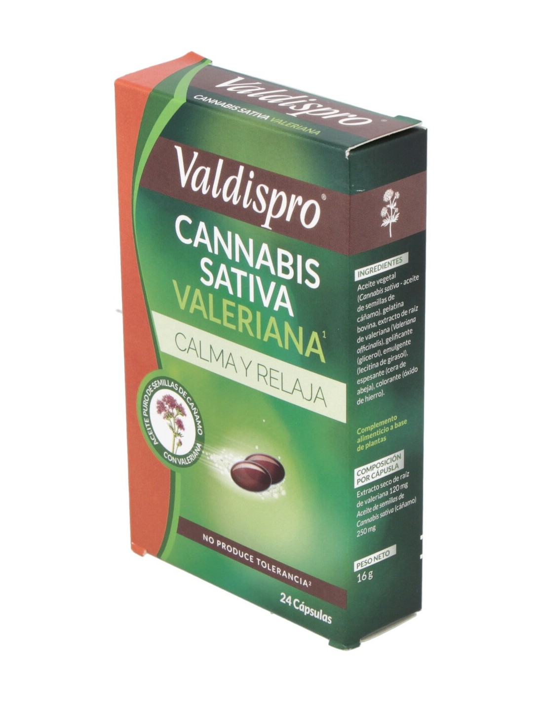 Extracto seco de raíz de valeriana 120 mg Aceite de semillas de Cannabis sativa (cáñamo) 250 mg