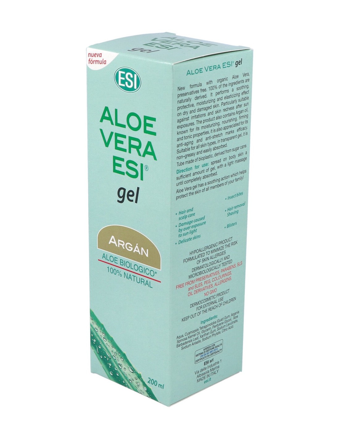 Aloe vera en gel con aceite de argán hidratante y nutriente.