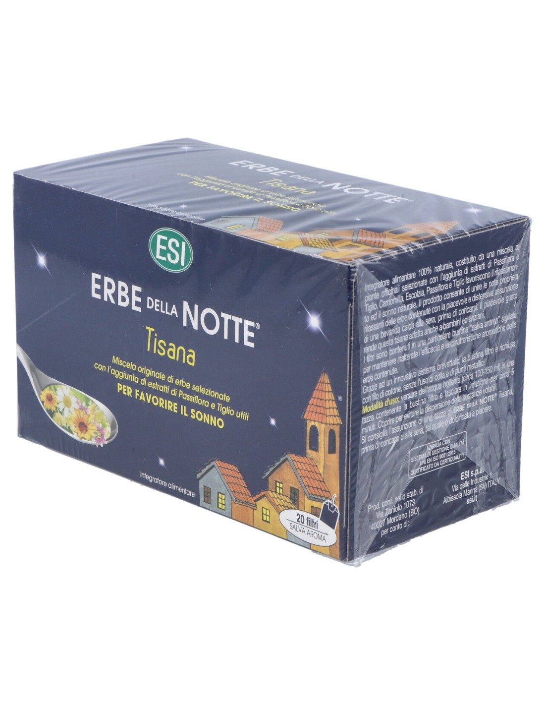 Complemento alimenticio a base de una mezcla de plantas medicinales y extractos secos de Passiflora y Tilo para promover la relajación y el sueño. El producto proporciona la posibilidad de unir las propiedades relajantes de las plantas en una agradable tisana. Apto para vegetarianos y veganos.