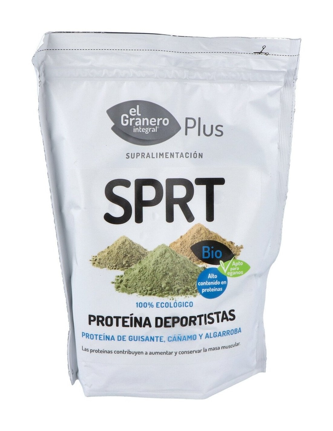 Proteína de guisante polvo* 40% (Pisum sativum L.), proteína de cáñamo polvo* 40% (Cannabis sativa), algarroba polvo* 20% (Prosopis pallida).