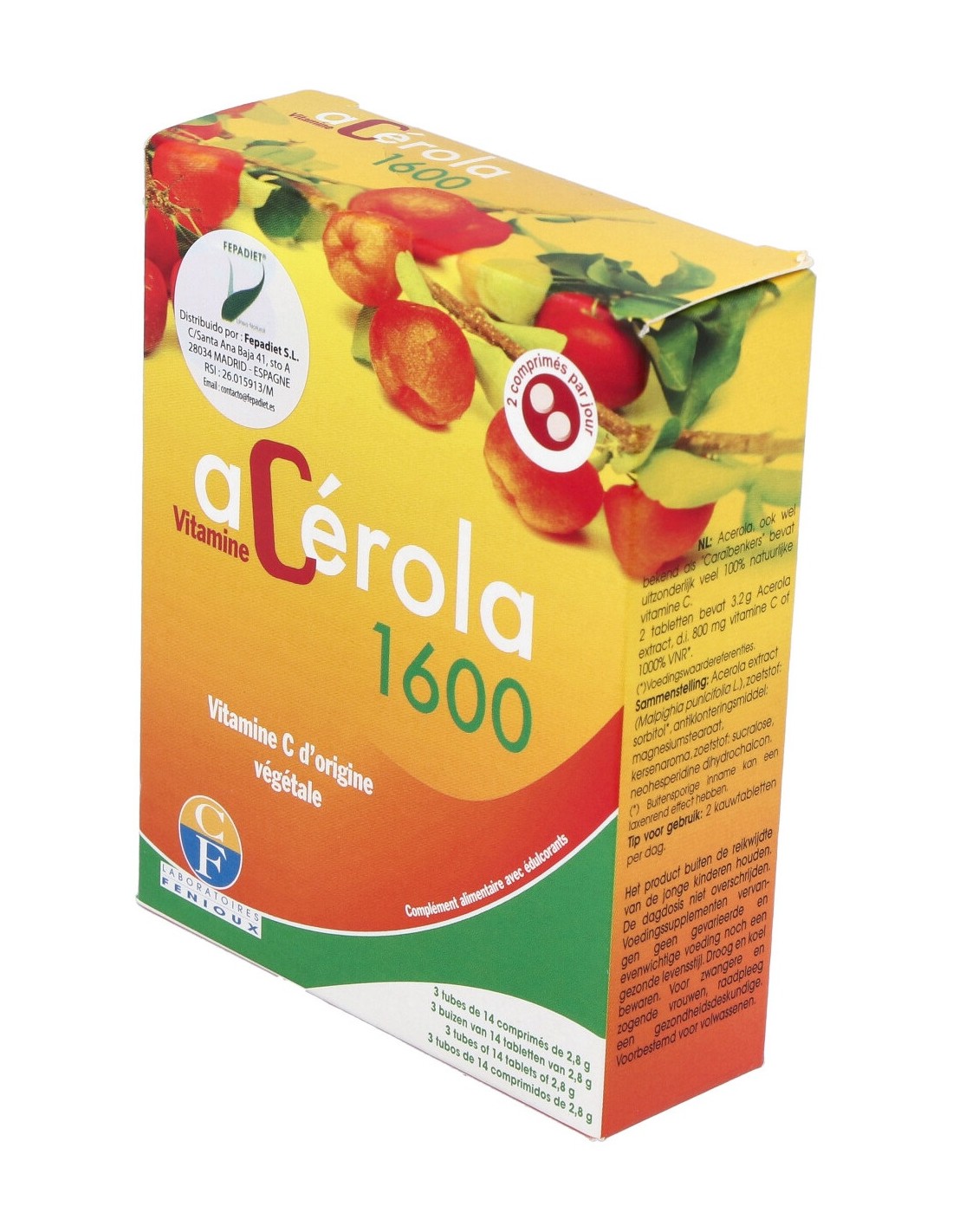 Agente de agregación: Sorbitol, Extracto de Acerola (Malpighia punicifolia) (20,7%), Estearato de Magnesio, Sabor a cereza (lactosa), sacarosa: neohesperidina dihidrocalcona.