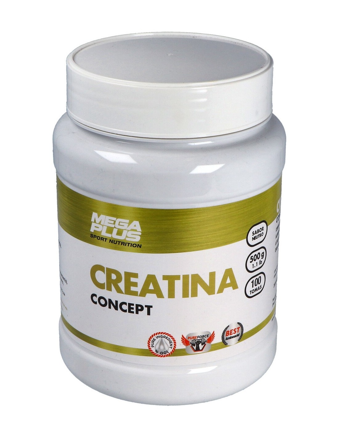 Ayuda a aumentar la fuerza muscular y el peso corporal.CREATINA CONCEPT 500gr. de MEGA PLUS