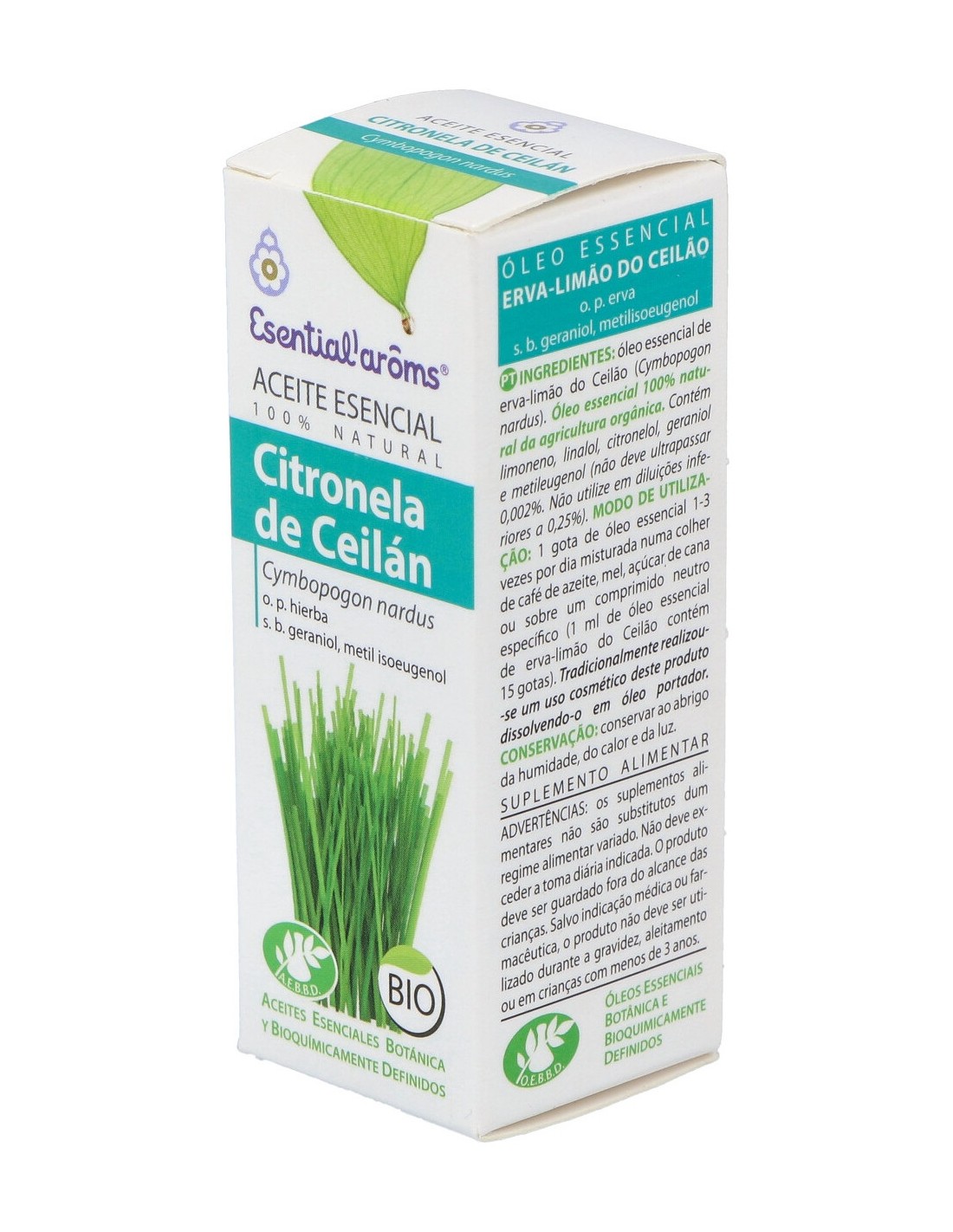 Aceite esencial de Cymbopogon nardus 100% puro, natural y completo, obtenido de la hierba por destilación por vapor de agua.