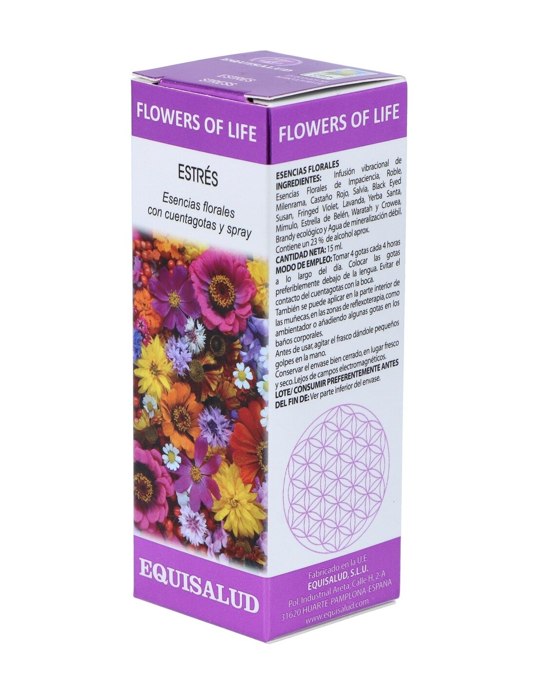 Infusión vibracional de esencias florales de Impaciencia, Roble, Milenrama, Castaño Rojo, Salvia, Black Eyed Susan, Fringed Violet, Lavanda, Yerba Santa, Mímulo, Estrella de Belén, Waratah y Crowea: brandy ecológico y agua de mineralización débil.