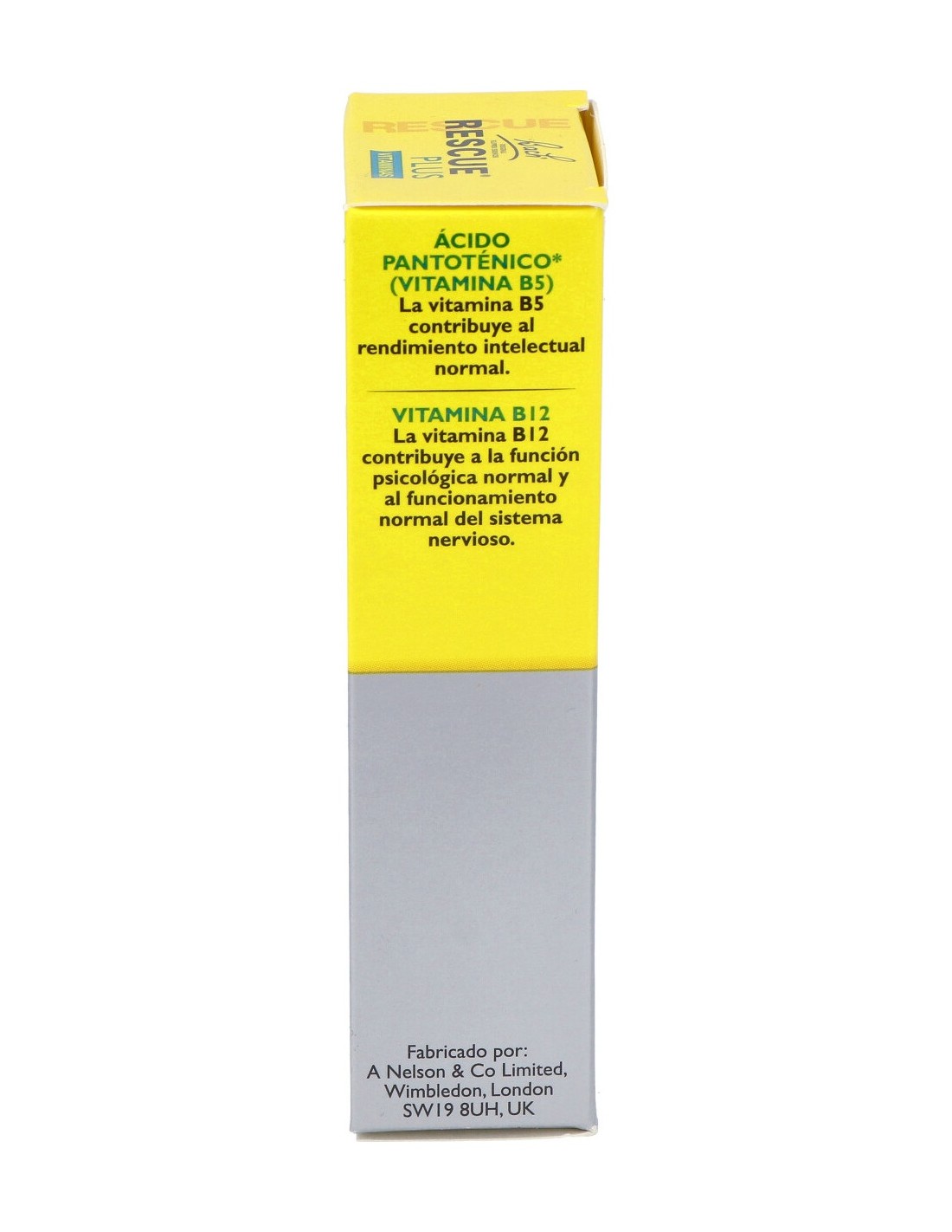 Glicerina, agua, D-pantotenato cálcico (vitamina B5), cianocobalamina (vitamina B12), aromas naturales (flores de saúco, limón, lima), dilución acuosa de la mezcla de flores Rescue® (Helianthemum nummularium (L.) Mill., Clematis vitalba L., Impatiens glandulifera Royle, Prunus cerasifera Ehrh., Ornithogalum umbellatum L.)