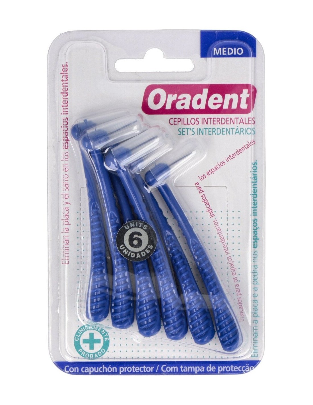 Muy eficaces en la limpieza de los espacios interdentales más amplios. Con un grosor Medio, eliminan la placa y el sarro en las zonas de mayor riesgo de caries. Recomendado su uso para la higiene bucal diaria de aparatos de ortodoncia.
