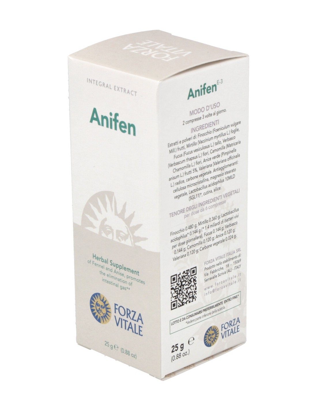 Extractos y Pulverizados de: Hinojo (Foeniculum vulgare) frutos, Arándano (Vaccinium myrtillus) hojas, celulosa microcristalina, magnesio estearato vegetal, Lactobacillus acidophilus*, cutina, Fucus (Fucus vesiculosus) talo, Gordolobo (Verbascum thapsus) flores, Manzanilla (Chamomilla recutita) flores, Anís verde (Pimpinella anisum) frutos 5%, Valeriana (Valeriana officinalis) raíz, carbón vegetal, sílice.