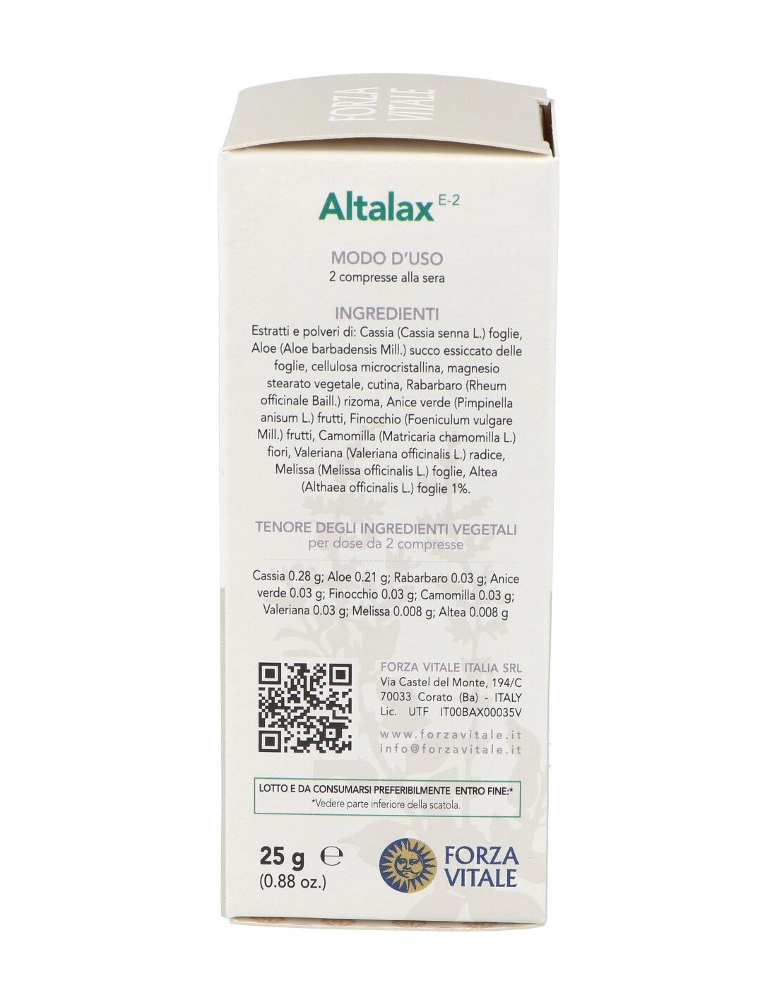 Extractos y Pulverizados de: Sen (Cassia senna) hojas, Aloe (Aloe barbadensis) jugo de las hojas, celulosa microcristalina, magnesio estearato vegetal, cutina, Ruibarbo (Rheum officinale) raíz, Anís verde (Pimpinella anisum) frutos, Hinojo (Foeniculum vulgare) frutos, Manzanilla (Chamomilla recutita) flores, Valeriana (Valeriana officinalis) raíz, Melisa (Melisa officinalis) hojas, Altea (Althaea officinalis) hojas 1%.