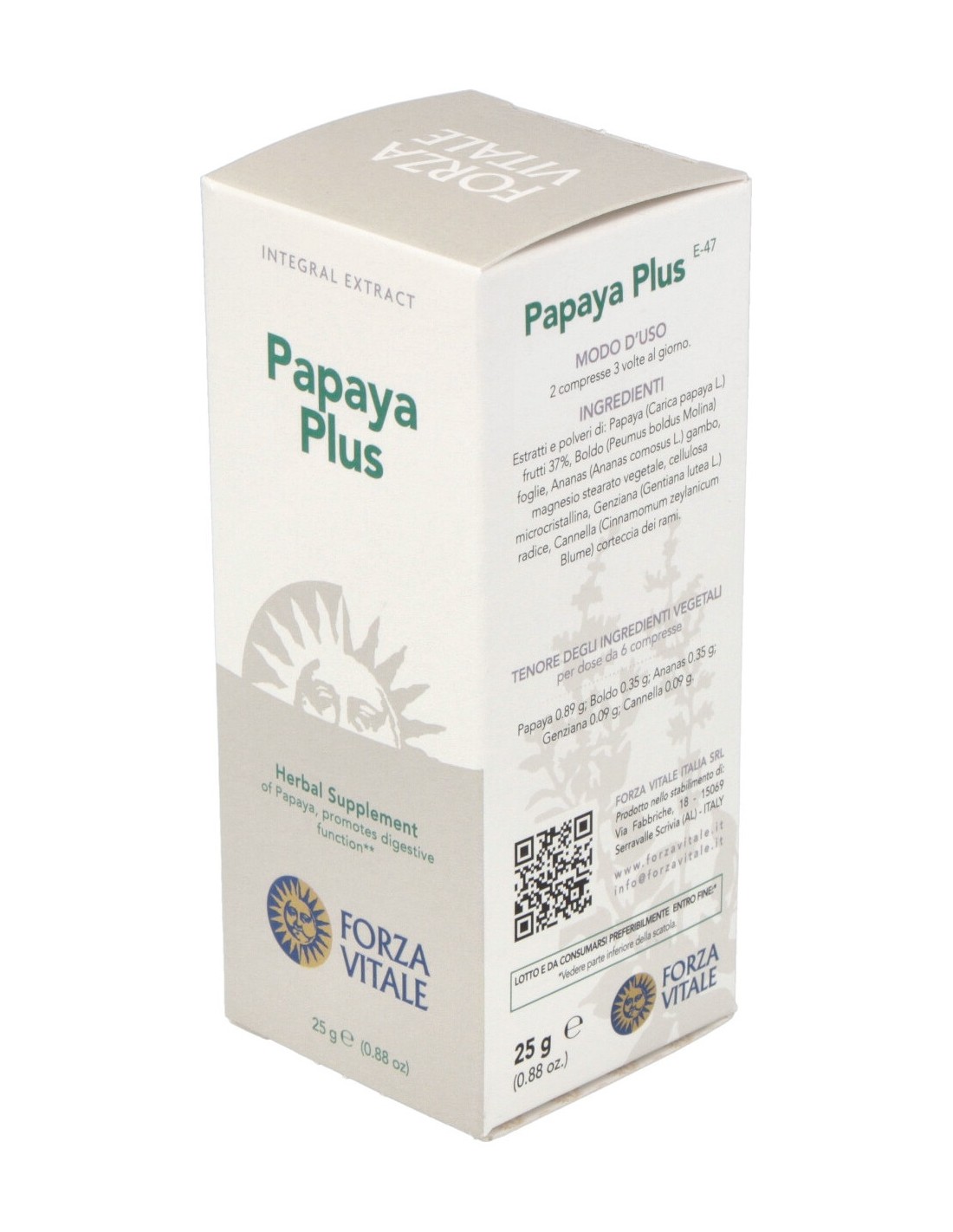 Papaya 0.89 g: Boldo 0.35 g: Piña 0.35 g: Genciana 0.09 g: Canela 0.09 g.