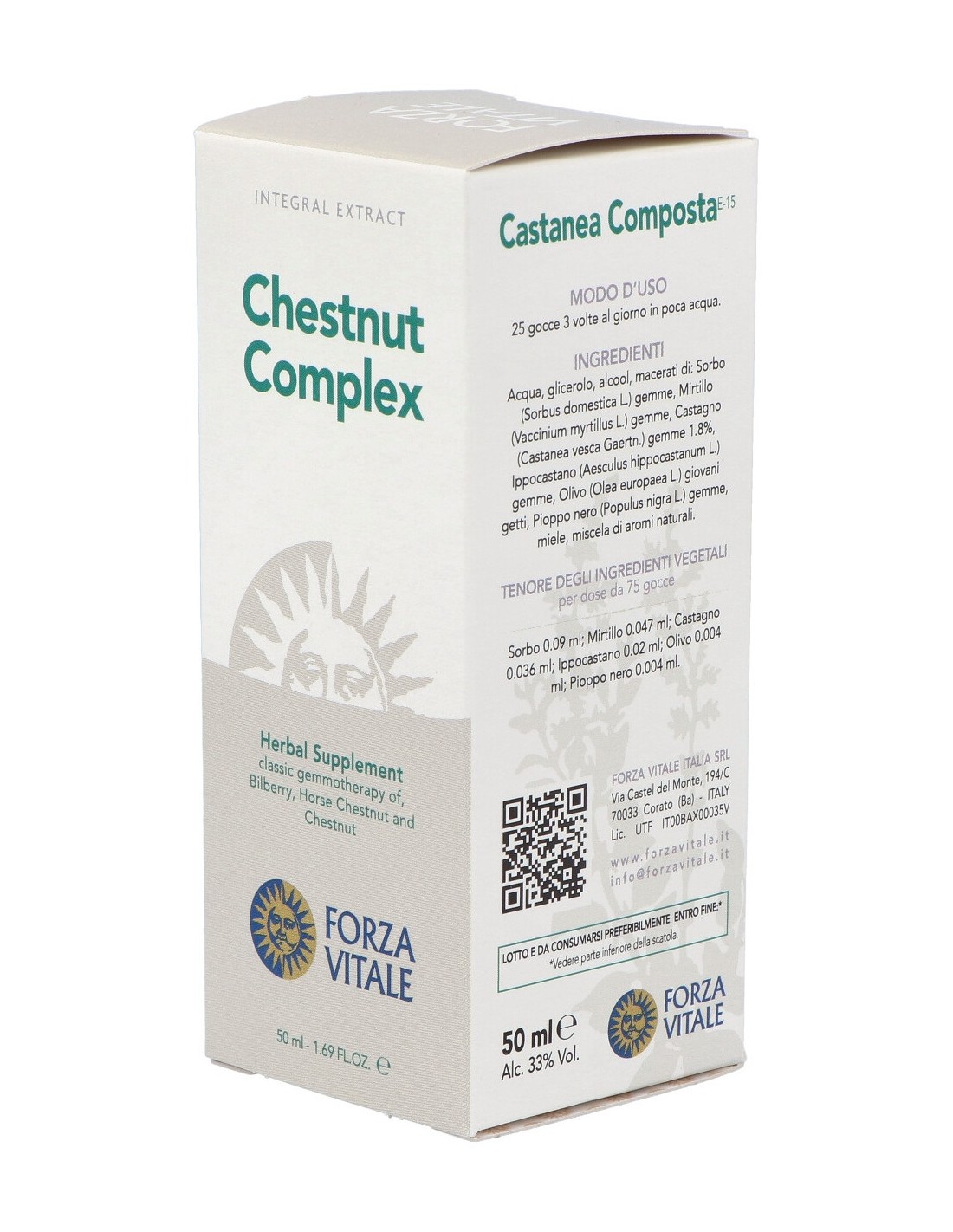 Suplemento a base de yemoderivados de Castaño, Serbal y Castaño de India. El extracto de las yemas del Serbal, es considerado útil en el normal mantenimiento de las venas.